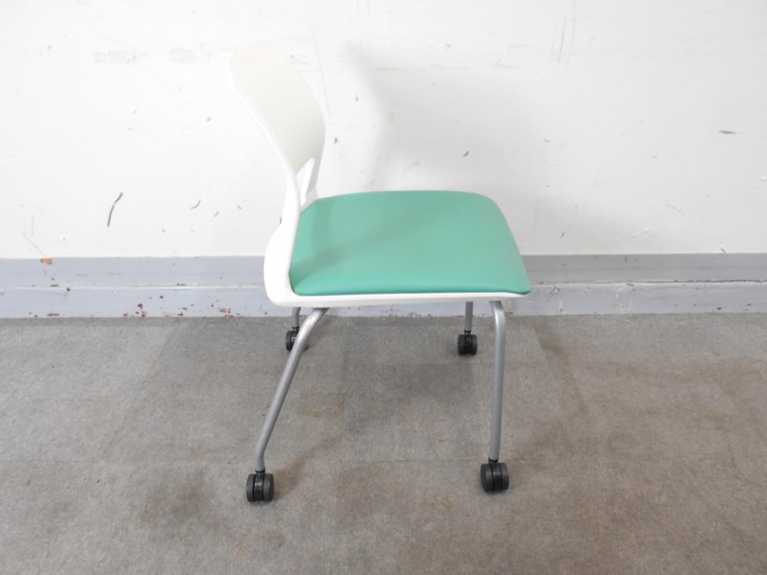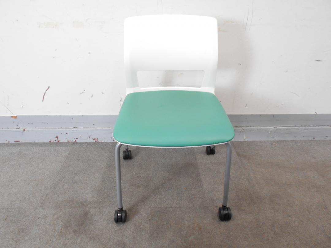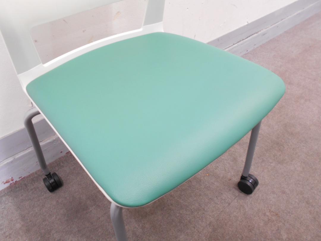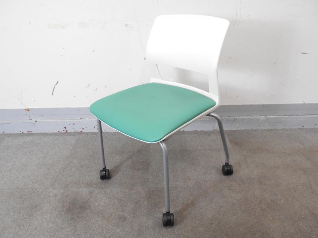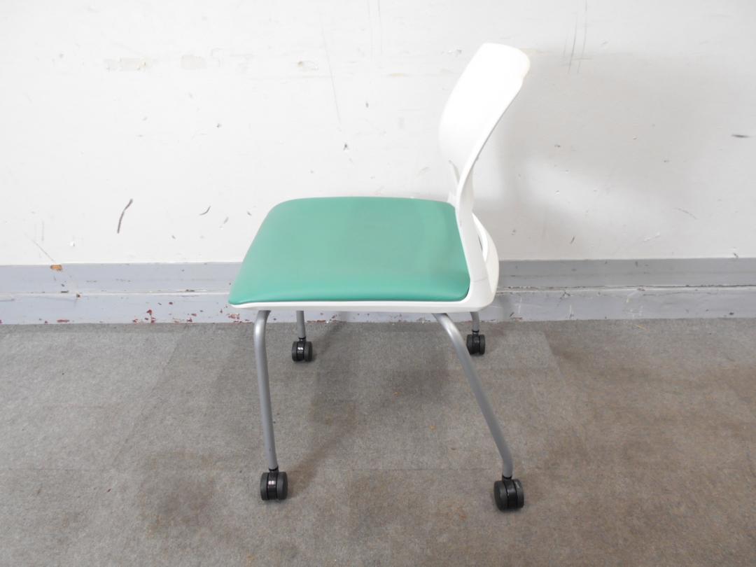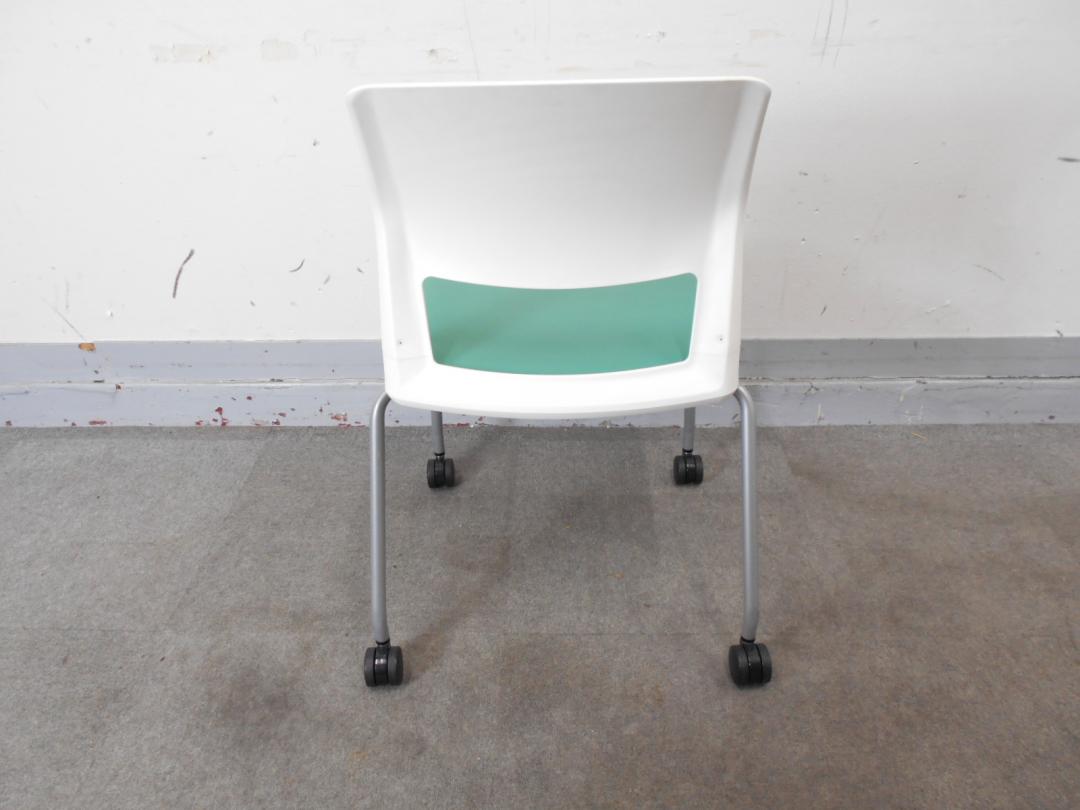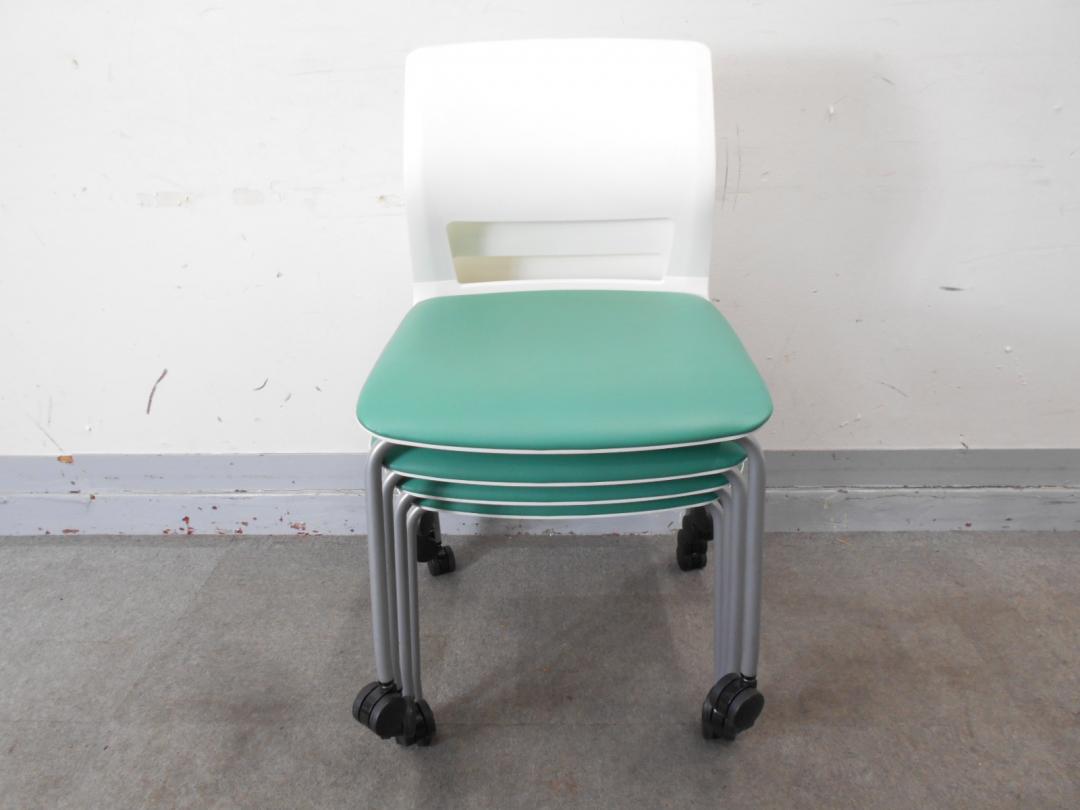 【KS】[お得な四脚セット]ホワイト×グリーンで事務所を明るくします!!キャスター付きで移動も邪魔にならない!- 茨城南店