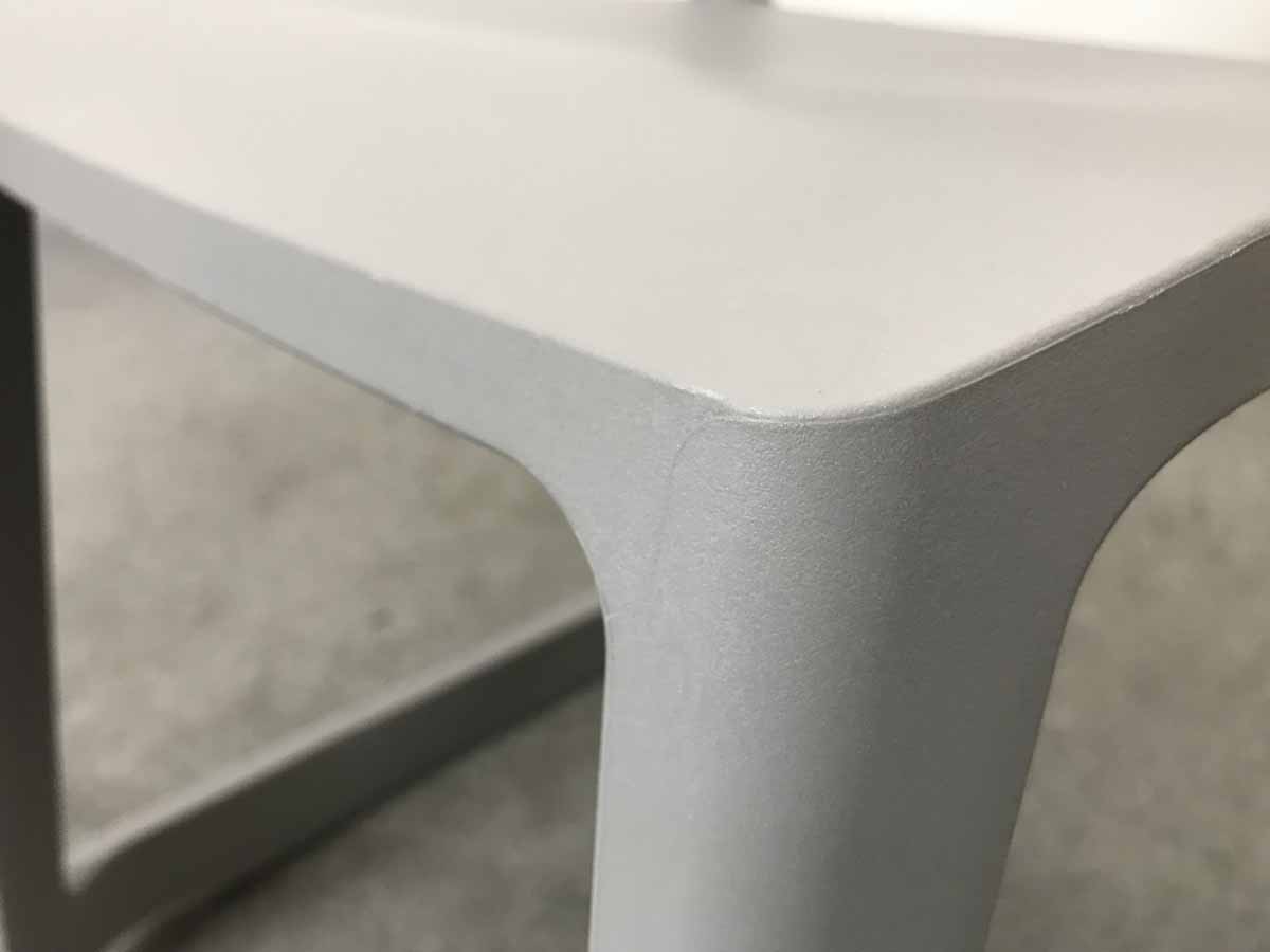 - かなり強い濃い黄ばみ・変色が商品全体にある。(例、座面・背もたれ、脚部等にある。)