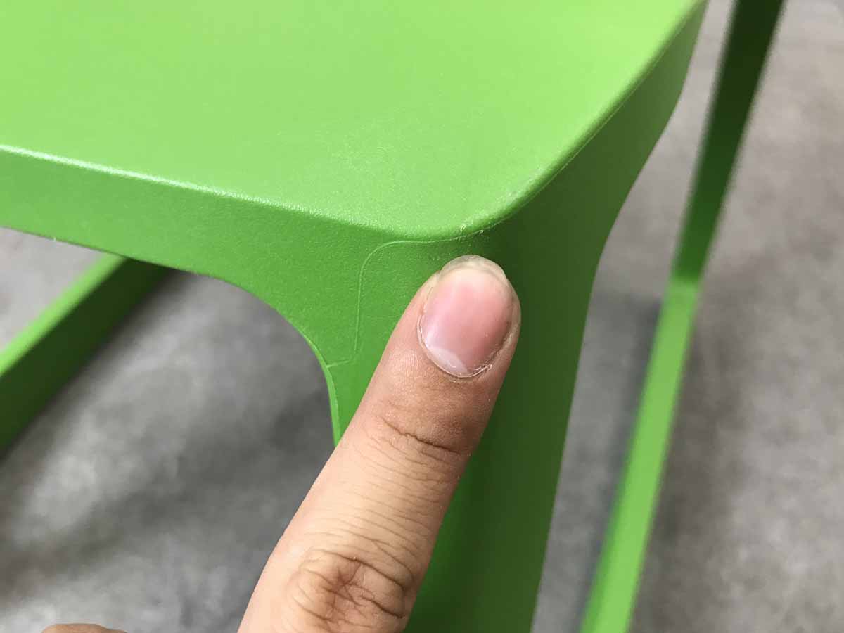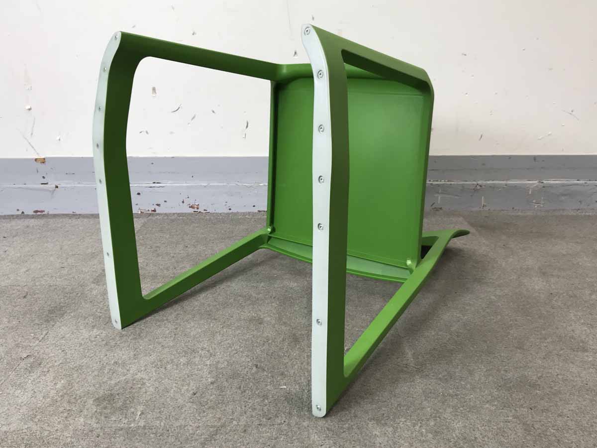 - かなり強い濃い黄ばみ・変色が商品全体にある。(例、座面・背もたれ、脚部等にある。)