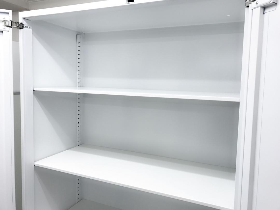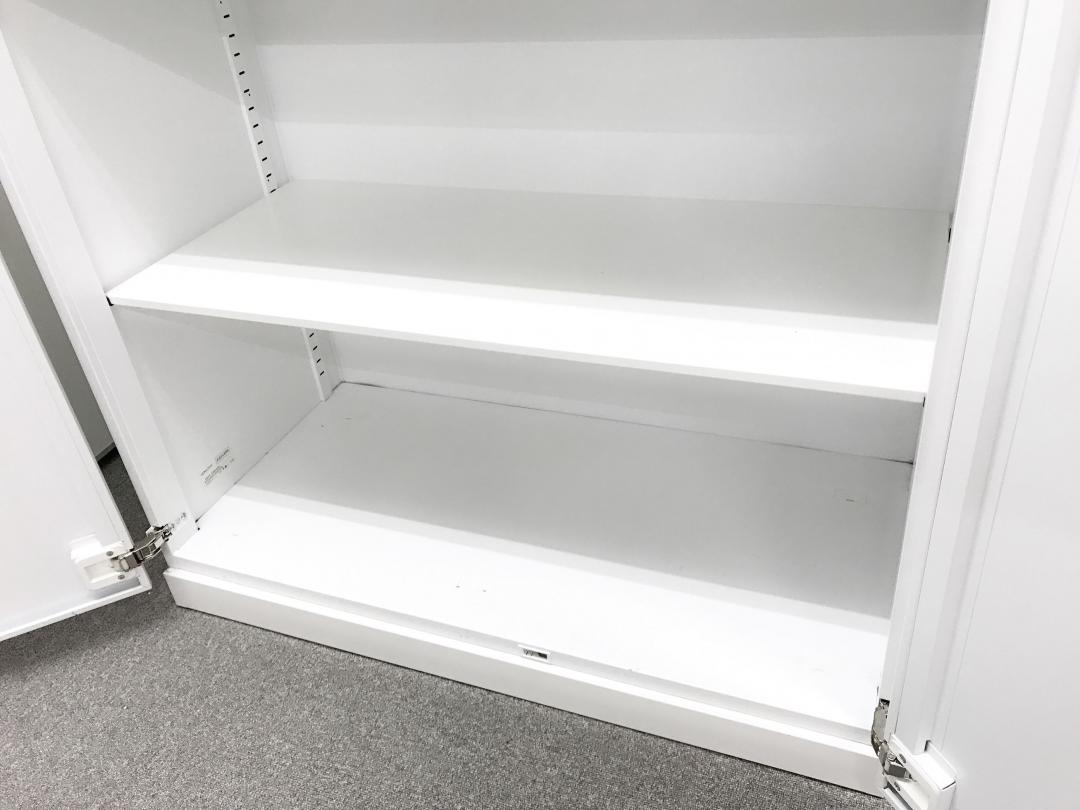 【収納物がひとめで分かる両開き戸タイプ!】■コクヨ(KOKUYO)製 エディア(EDIA)シリーズ 両開き書庫 ローキャビネット H1130㎜ ■天板・ベース付 ■ホワイト ■シリンダー錠【IB】