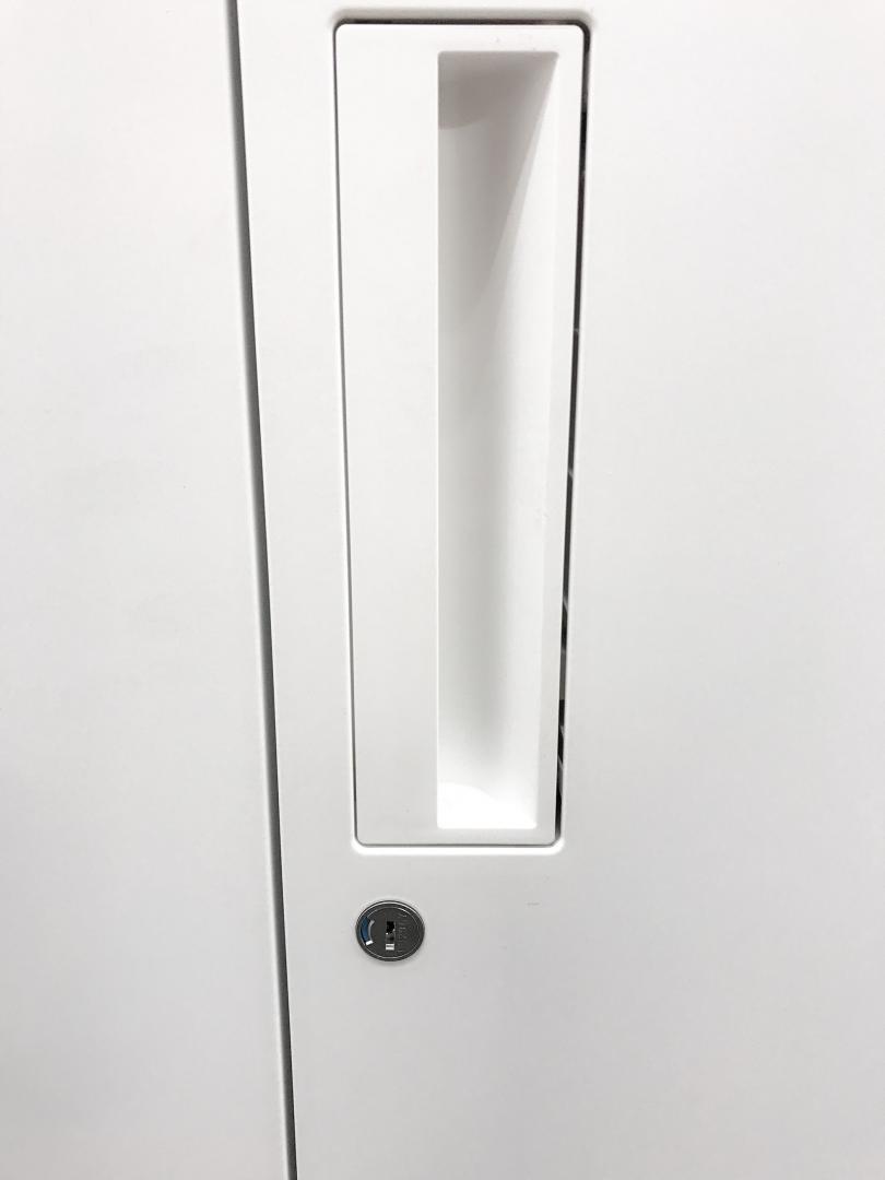 【収納物がひとめで分かる両開き戸タイプ!】■コクヨ(KOKUYO)製 エディア(EDIA)シリーズ 両開き書庫 ローキャビネット H1130㎜ ■天板・ベース付 ■ホワイト ■シリンダー錠