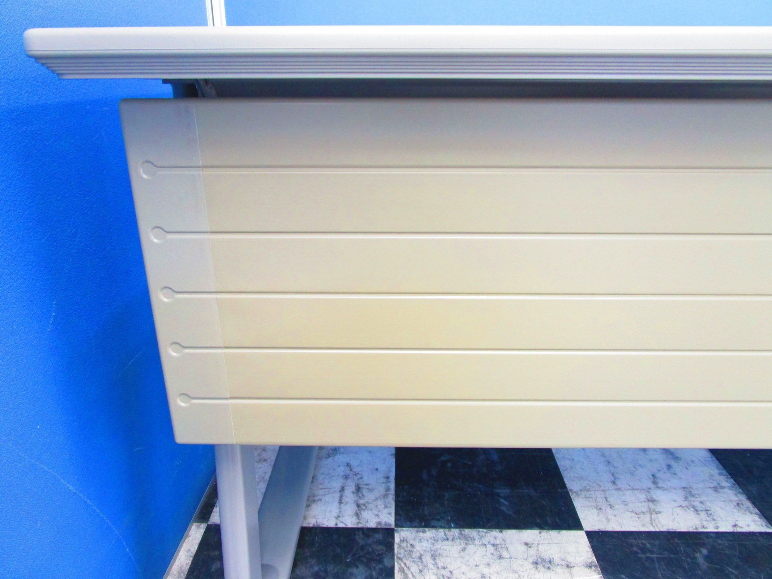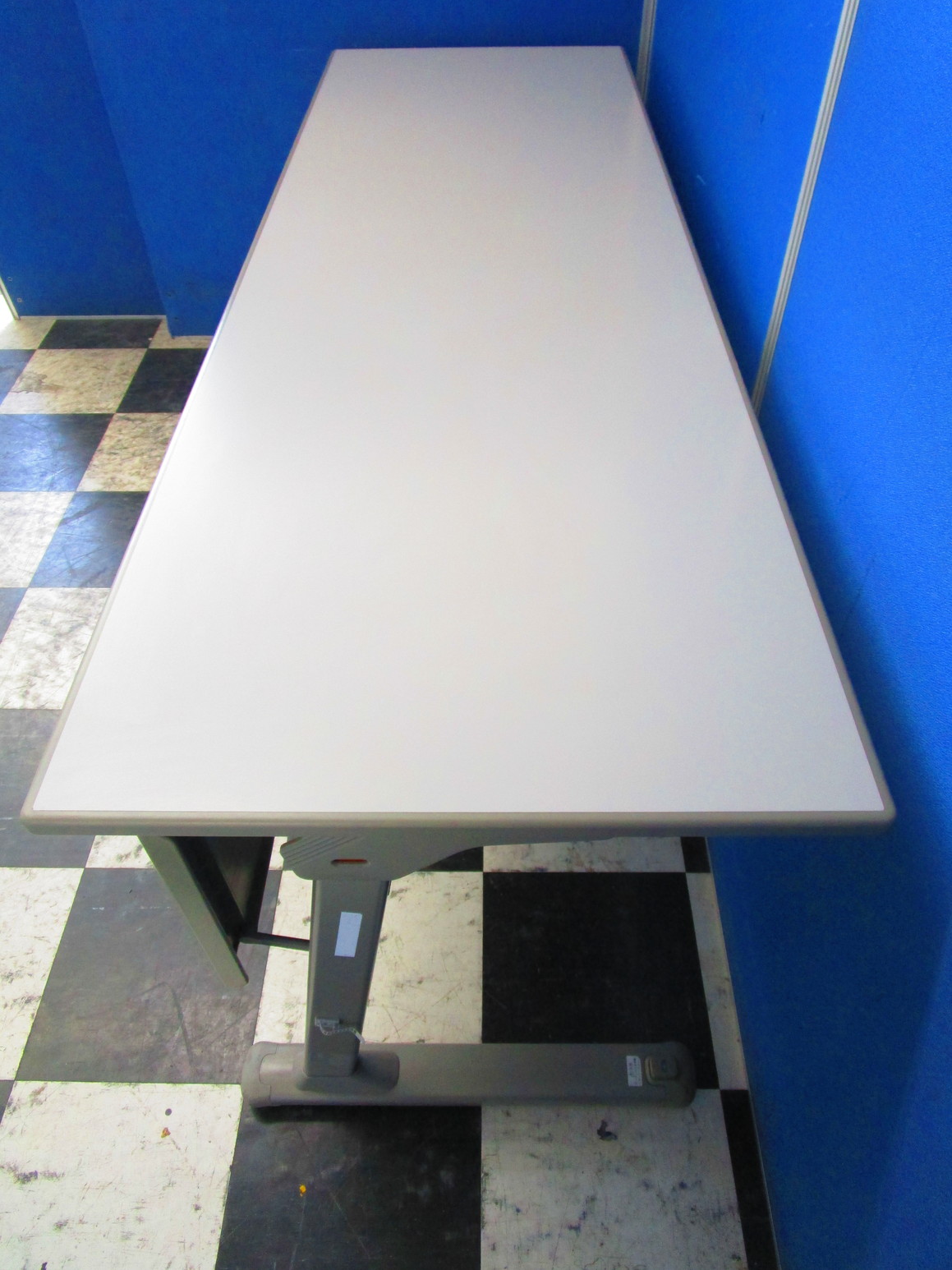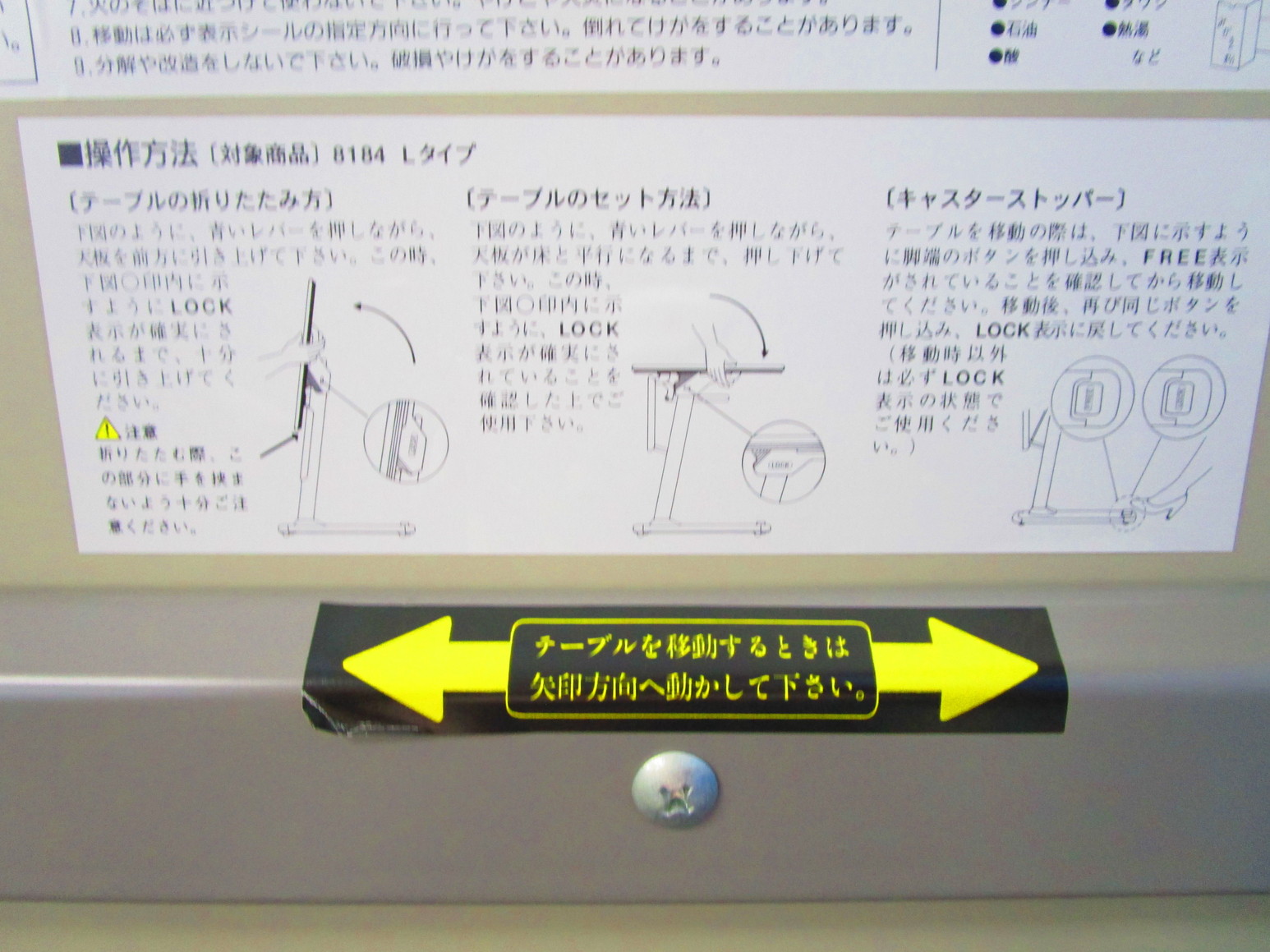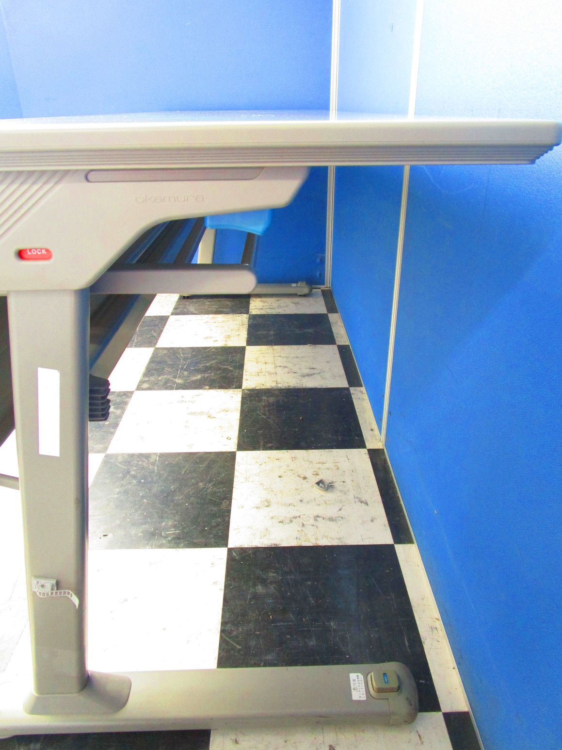 - 一部不具合あり天板歪み、アジャスター無し、キャスター使用不可ようなそのテーブルの本来の効用を果たすための機能以外の一部が使用不可な状態。(例、キャスターロッ ク機能使用不可、棚板無し等がある。)