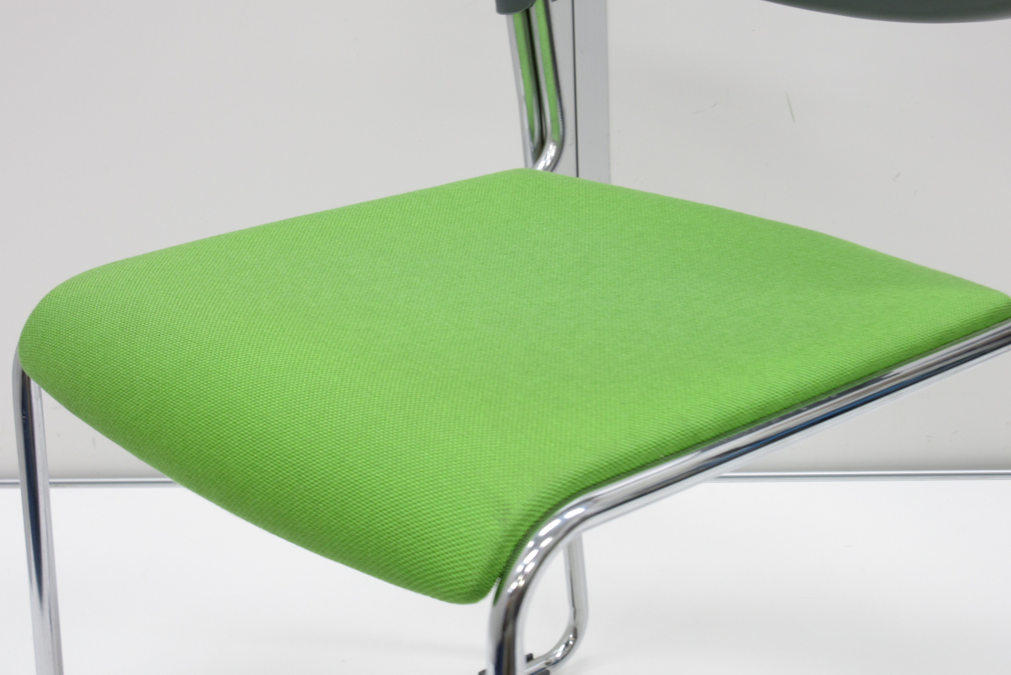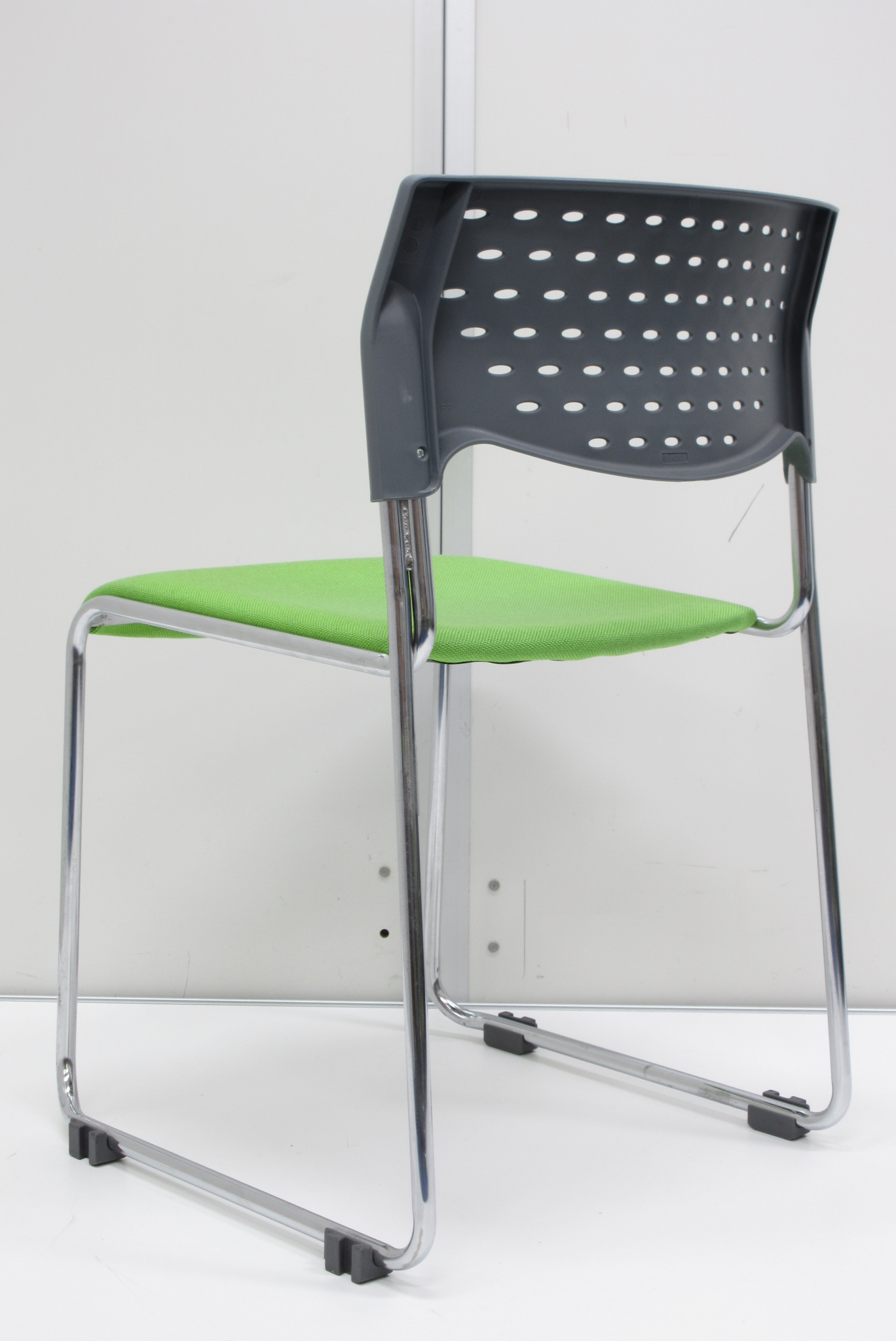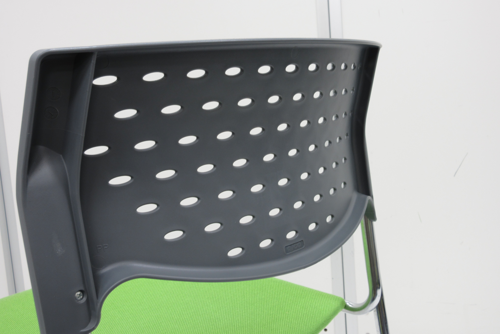 【穴あき背もたれで通気性◎】鮮やかなグリーンの会議用チェア!!【4脚在庫有り!!】- 在庫数