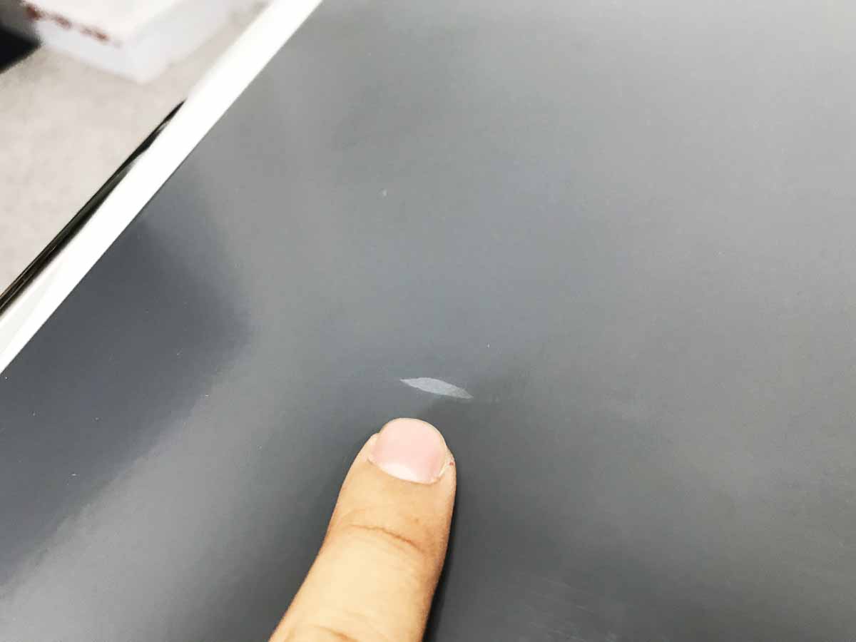 - あり黄ばみ・変色が広い範囲にうっすらある、または濃い黄ばみ・変色が一部ある。(例、天板、正面、背後、サイド部分にある。)