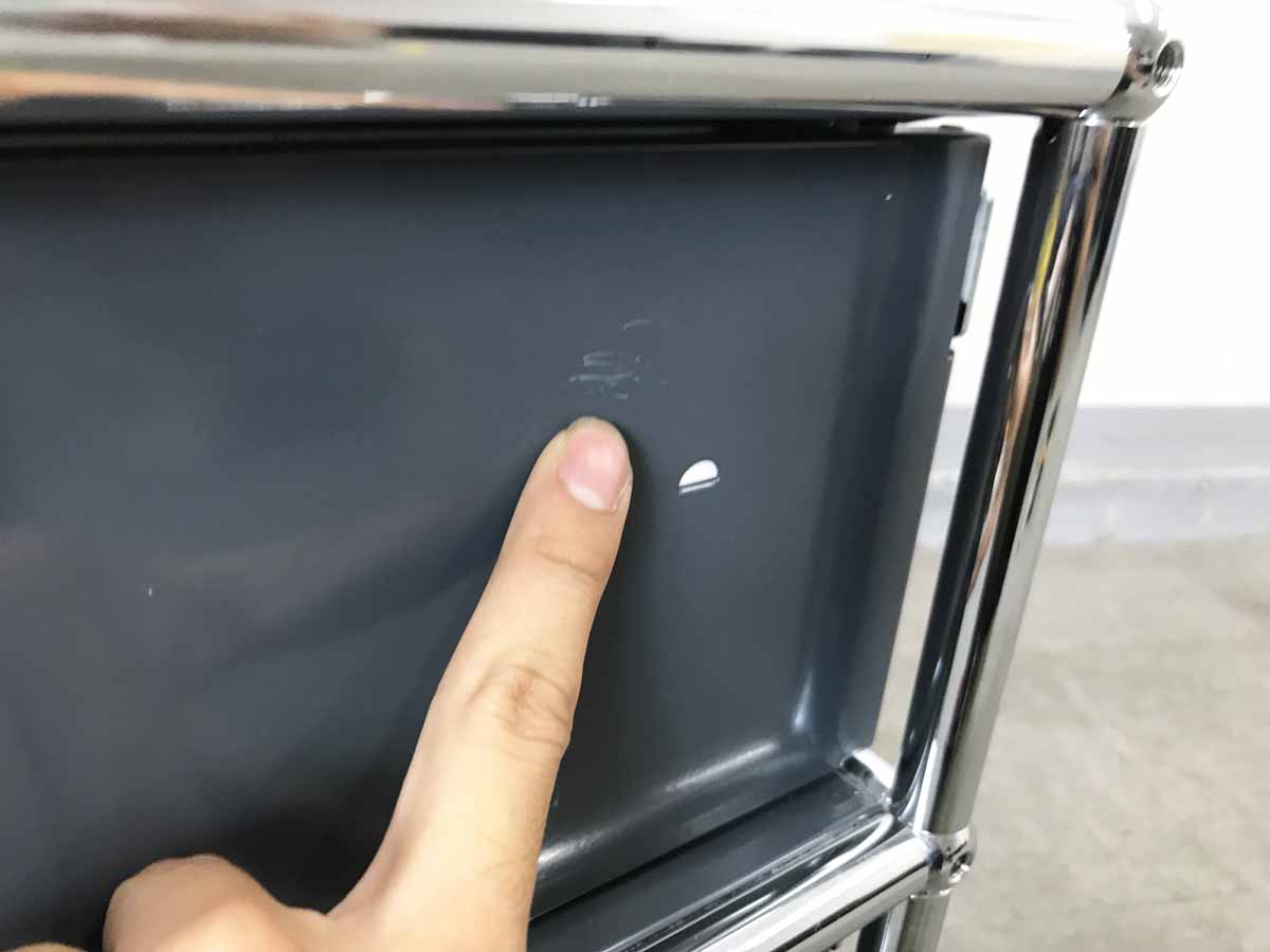 - 一部不具合ありその脇机・ワゴンの本来の効用を果たすための機能以外の一部が使用不可な状態。(例、引出が開閉しづらい、 キャスターロック機能使用不可、ラッチ不良 等がある。)