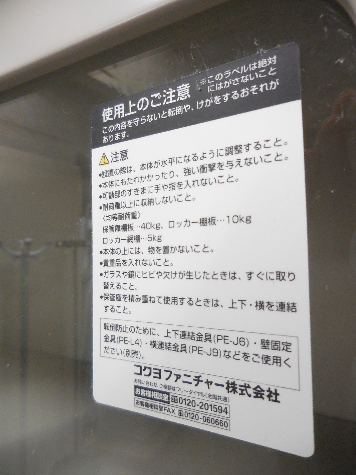 - 一部不具合ありそ引出の開閉不可、施錠不可、棚板無しといったの書庫の本来の効用を果たすための機能以外の一部が使用不可(例、扉、引出の開閉がしづらいなどがある。 )