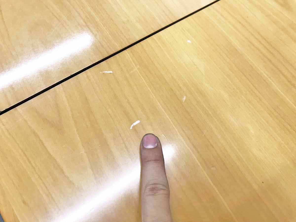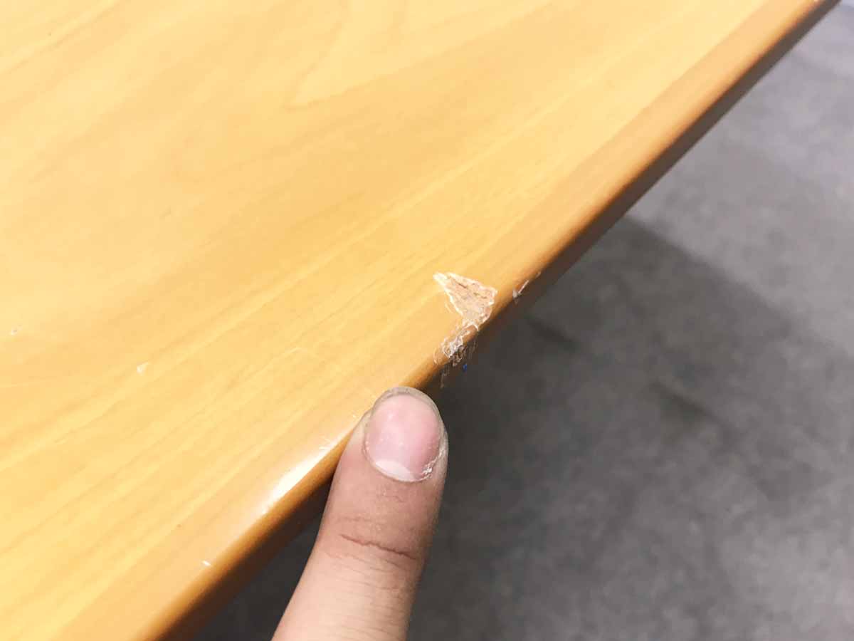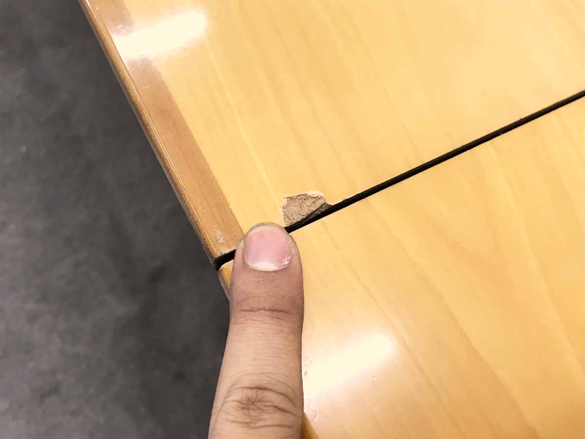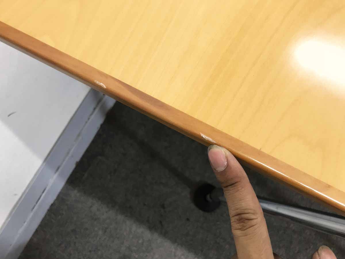 - 壊れている天板歪み、アジャスター無し、キャスター使用不可のようにそのテーブルの本来の効用を果たすための機能に不具合がある。