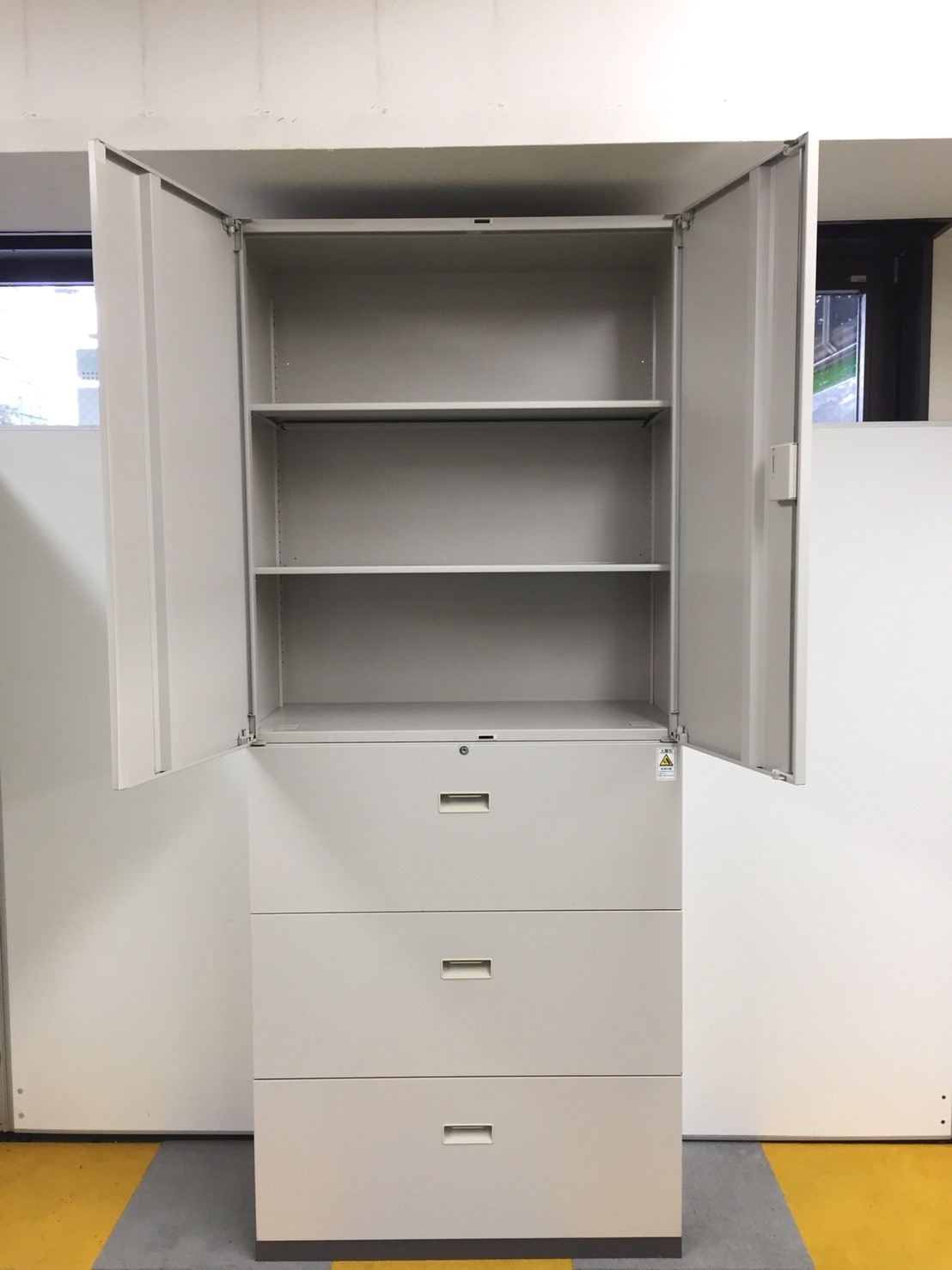 - 一部不具合ありそ引出の開閉不可、施錠不可、棚板無しといったの書庫の本来の効用を果たすための機能以外の一部が使用不可(例、扉、引出の開閉がしづらいなどがある。 )