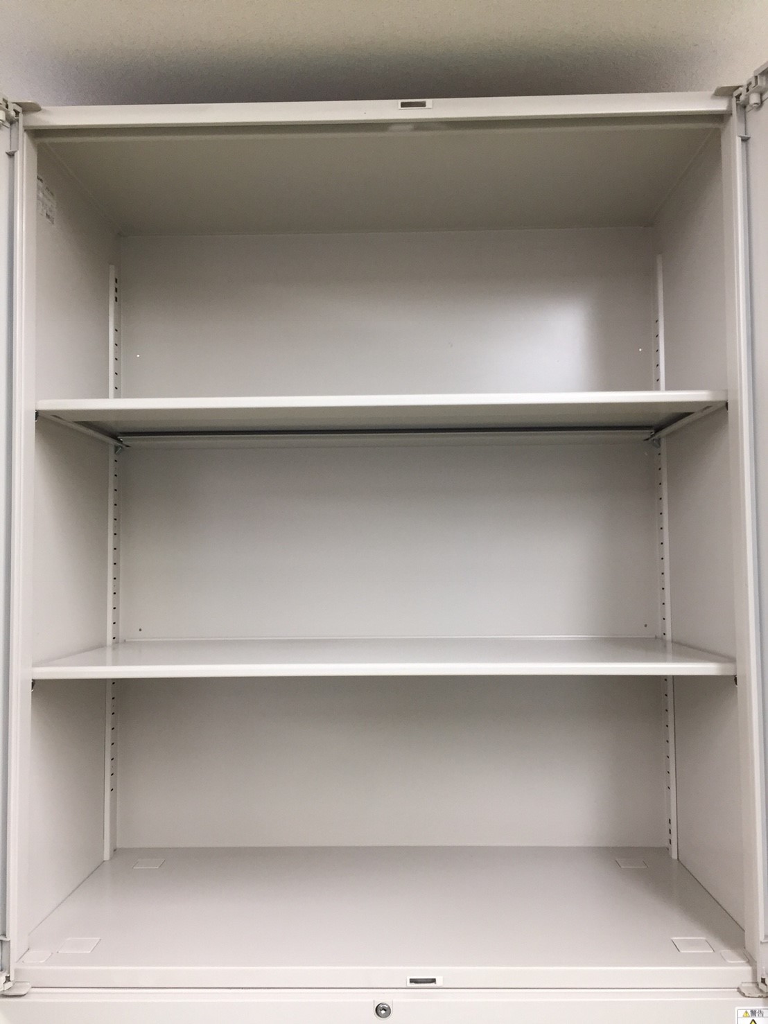 上の両開きは収納物に合わせて棚板の高さを自由に変えることができます!