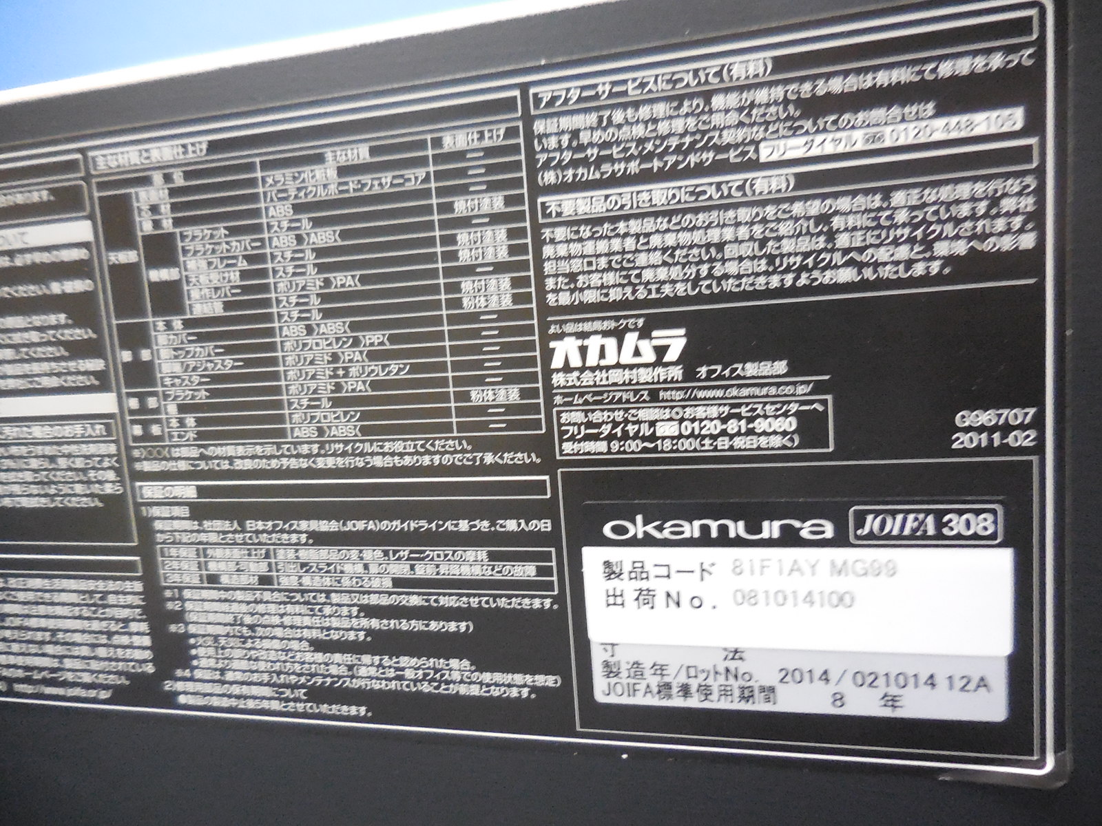 1流メーカー品のオフィス家具は何と【7年】基準となっております!※ガス昇降部等を除く