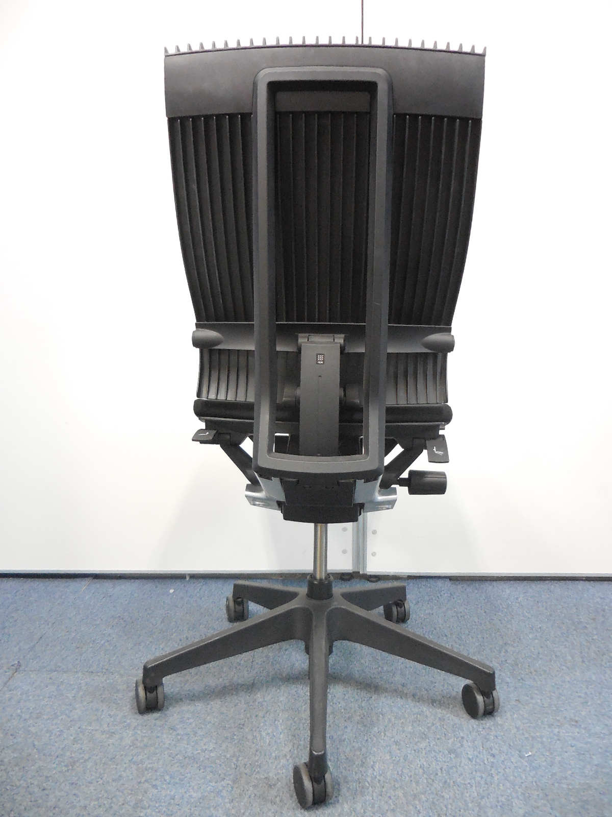 見た目は少し硬そうに見えるエラストマー素材ですが、座ってみると程よいしなり具合のやわらかな座り心地で、背中が痛くなるようなことはまるでありません。面ではなく線で支えることで、背面の通気性の良さは抜群です。