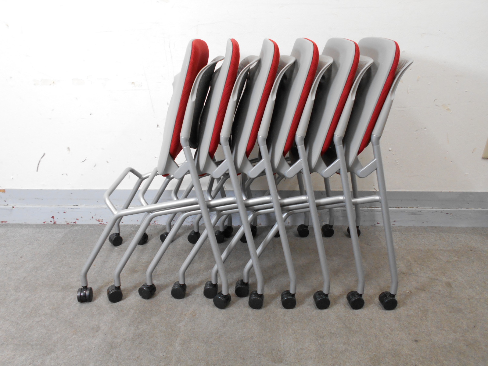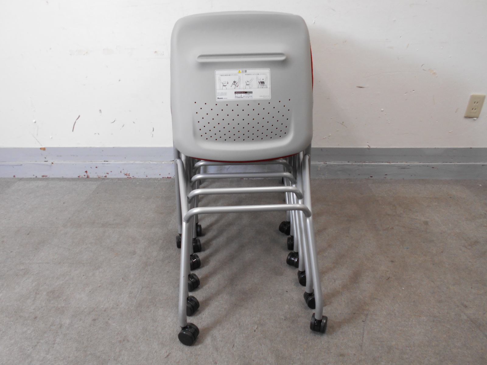【KS】【6脚セット・ネスティングチェア】オカムラ ルナチェア 明るいレッドカラーが今ならまとまります!- 茨城南店