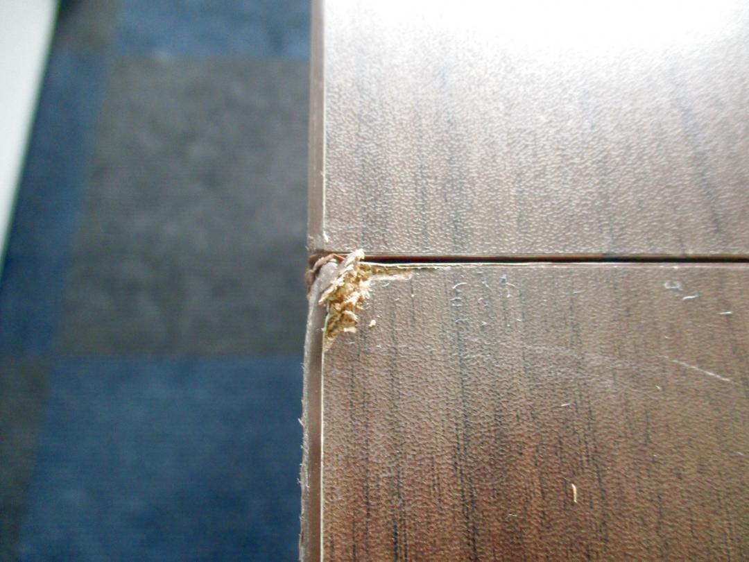 - かなり強い濃い黄ばみ・変色が商品全体にある。(例、天板、幕板、棚板、サイド部分、脚部等にある。)