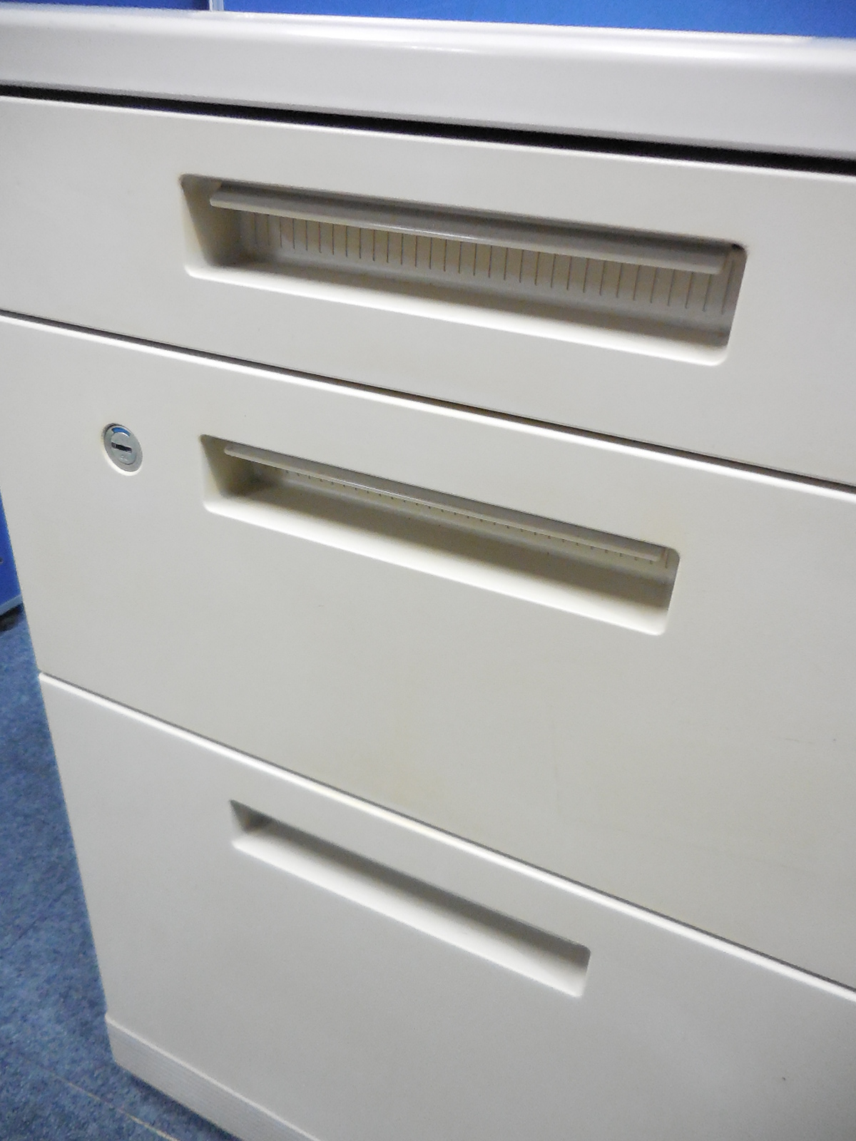 - 一部不具合ありその脇机・ワゴンの本来の効用を果たすための機能以外の一部が使用不可な状態。(例、引出が開閉しづらい、 キャスターロック機能使用不可、ラッチ不良 等がある。)