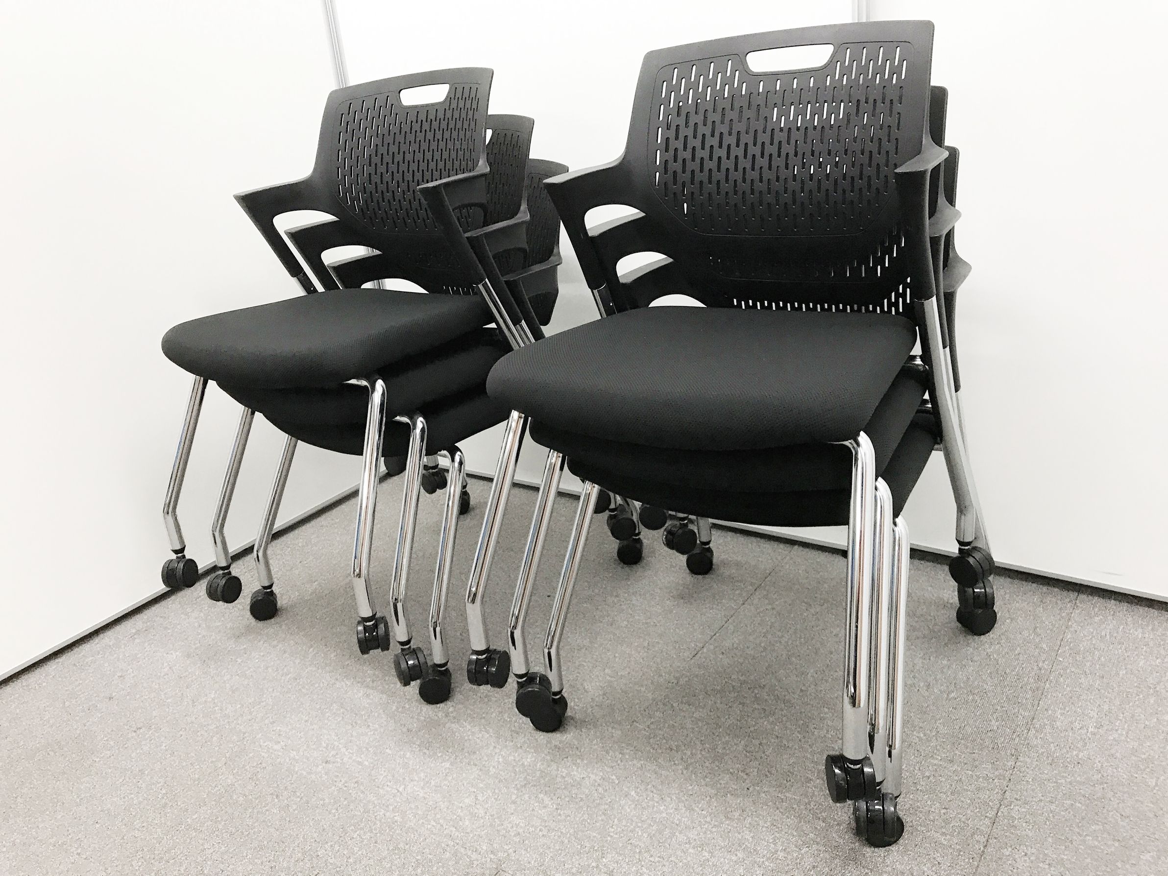 【お得な6脚セット!】【状態良好◎】オカムラ製のパートチェア【重ねて収納】【キャスター良好◎】- 日本橋店