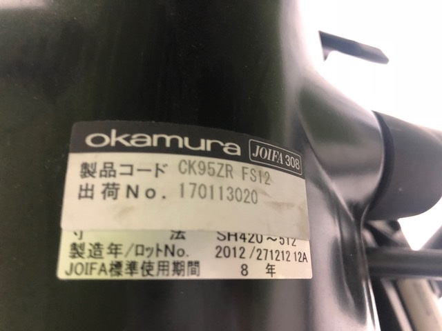 【中古】 カロッツァチェア CK95ZR FS12 オカムラ/okamura 肘付ハイバックチェア 233426