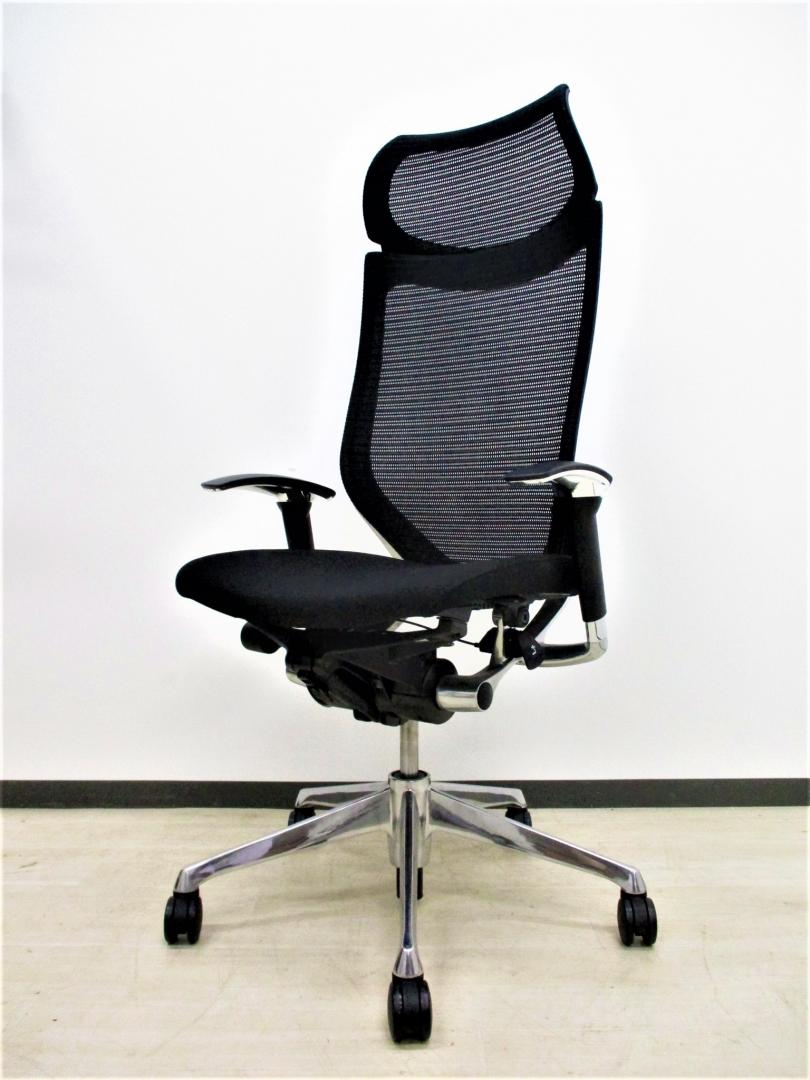 【オフィスの執務室、会議室におすすめ!】■オカムラ(okamura)製 バロン(Baron)チェア 肘付き ハイバック ■背・座面メッシュ ■可動肘 ■ヘッドレスト付き ■ブラック【硬めの座面が大人気!国産メッシュチェアの代表格!】