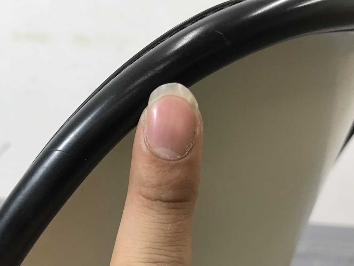 - あり黄ばみ・変色が広い範囲にうっすらある、または濃い黄ばみ・変色が一部ある。(例、座面・背もたれ、脚部等にある。)