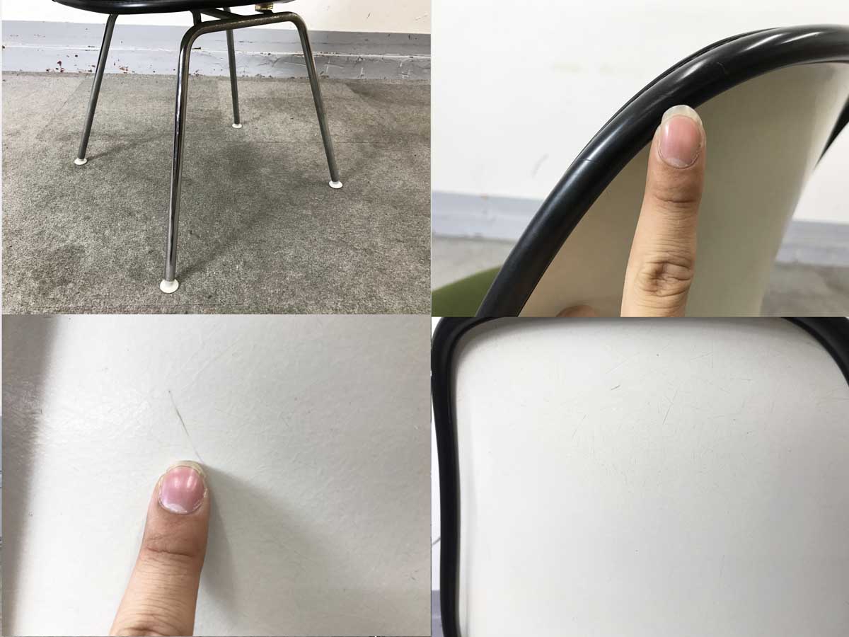 - 目立つ箇所あり傷・破れ・ほつれ・へたり・しわが多数または深い傷・破れ・ほつれ・へたり・しわが一部ある。※座面・背もたれ、シェル、脚部等にある。
