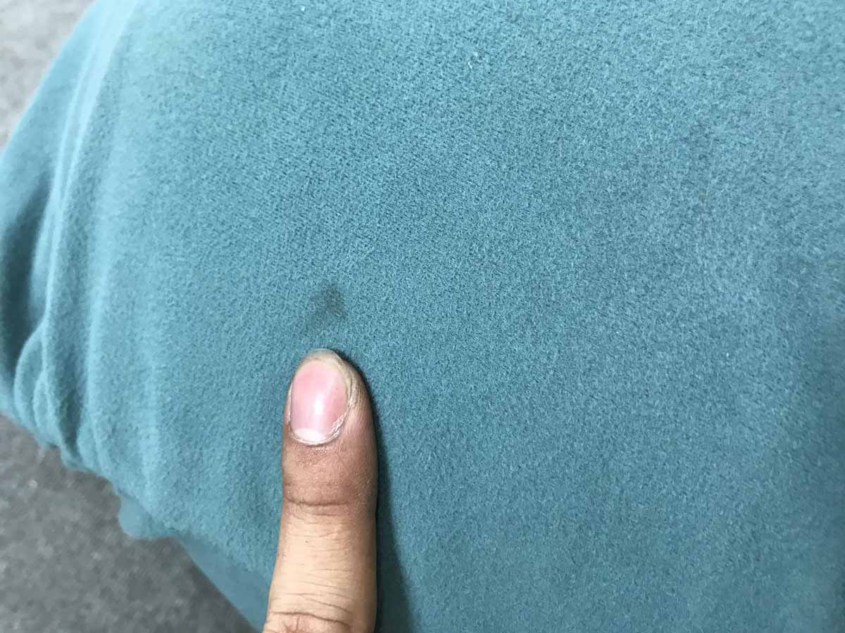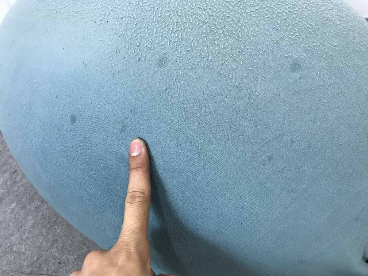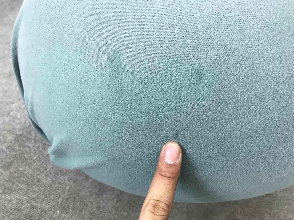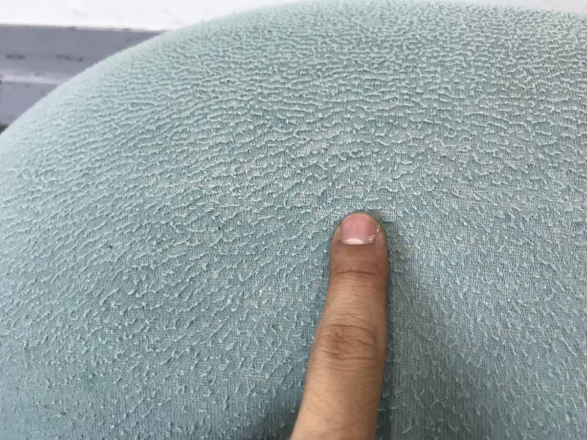 座面に薄い汚れシミ、目立つ毛羽立ちがあります。