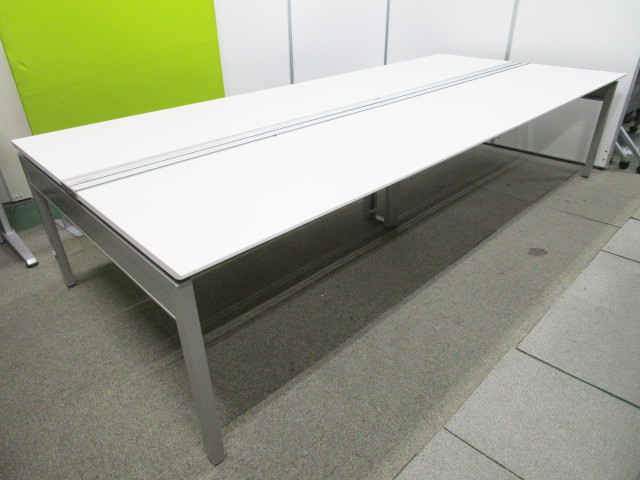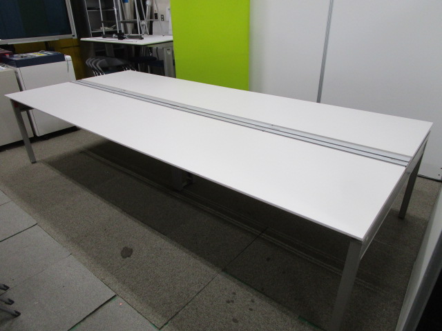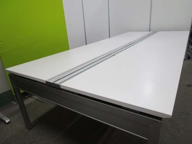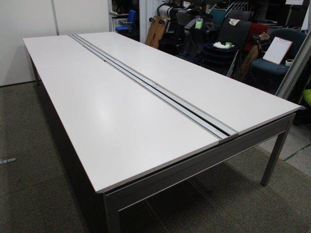 【W3200 4枚天板 両面タイプ】【4~6名用】お得なフリーアドレスデスク【1人W1600と広く使えます】【天板1枚に若干緩やかな窪み有りの為、値下げ中】【Ω】- 池袋店