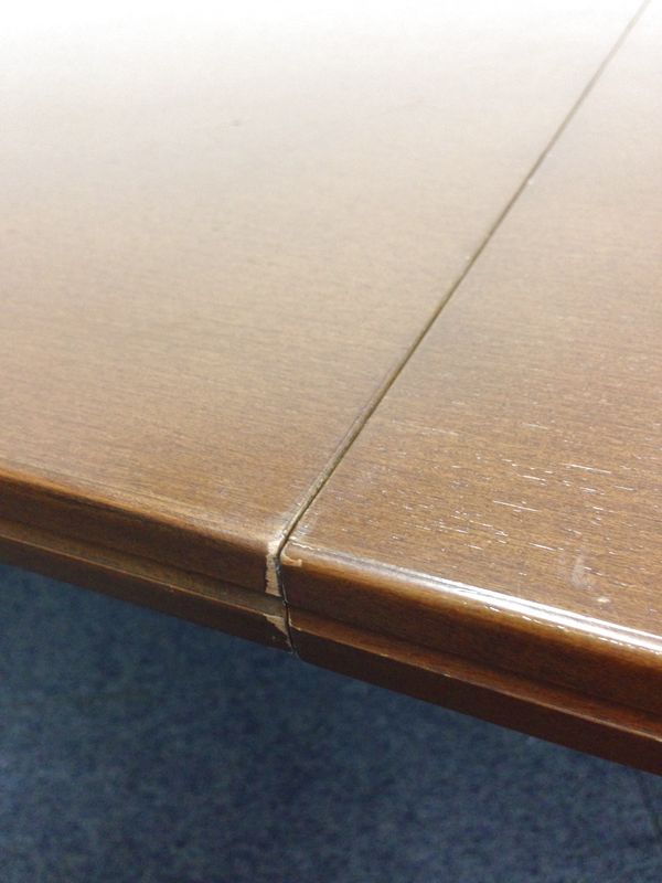 - 壊れている天板歪み、アジャスター無し、キャスター使用不可のようにそのテーブルの本来の効用を果たすための機能に不具合がある。