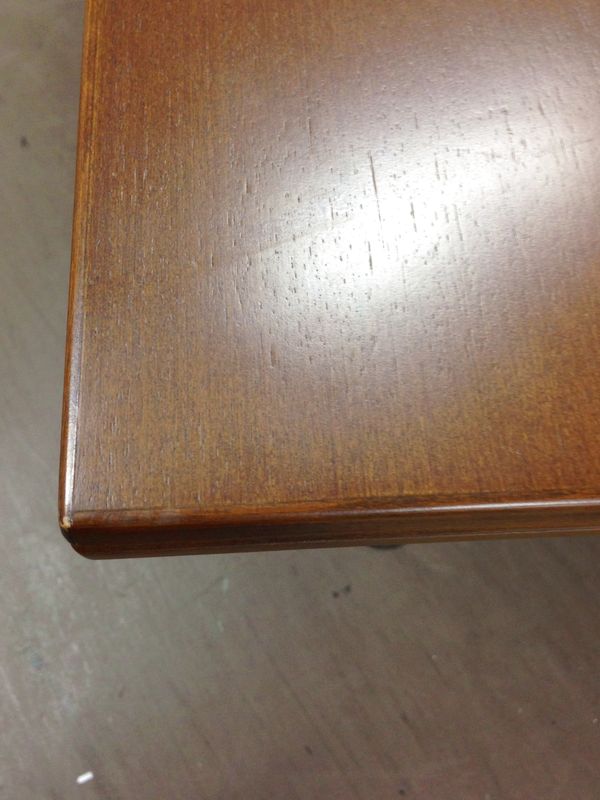 - かなり強い濃い黄ばみ・変色が商品全体にある。(例、天板、幕板、棚板、サイド部分、脚部等にある。)