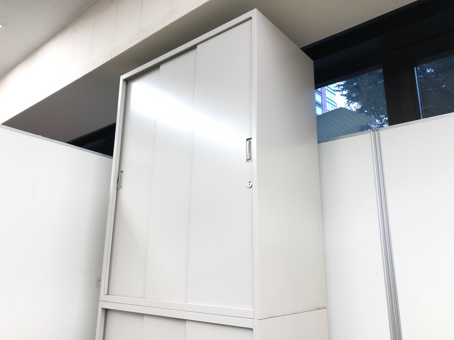 【置き場所に困らない3枚引き戸!】■イトーキ製・シンライン 上下書庫セット【2台】- 品川・三田店