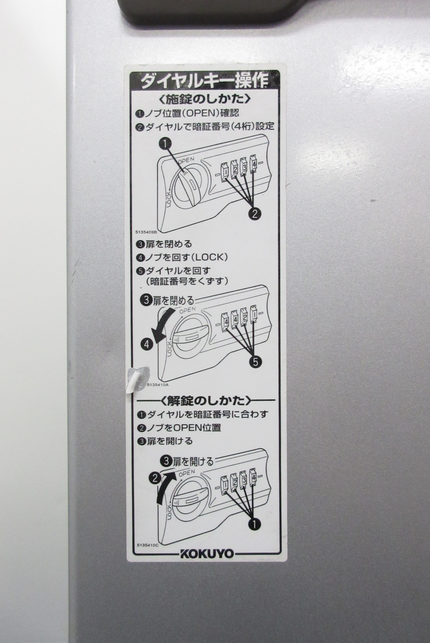 - 一部不具合あり扉の開閉不可、施錠不可といったそのロッカーの本来の効用を果たすための機能以外の一部が使用不可な状態※扉の開閉がしづらい等がある。