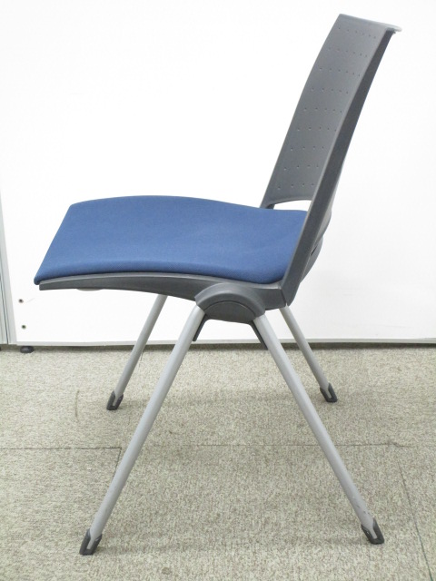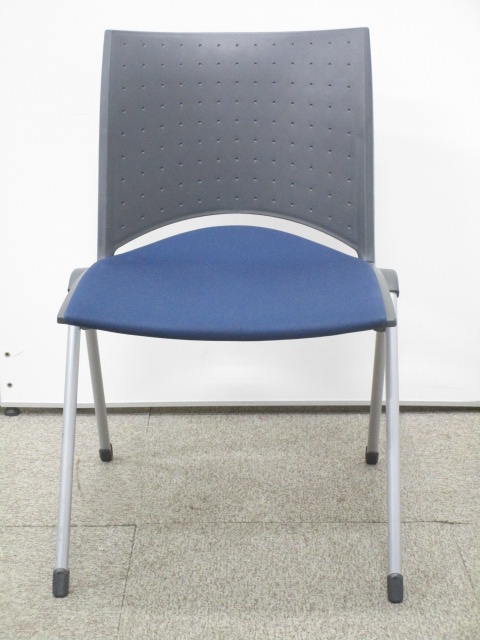 【重ねて収納可能なミーティングチェア】スタイリッシュなデザイン!会議用におすすめ!人気のブラック×ブルー!【スタック】- 池袋店