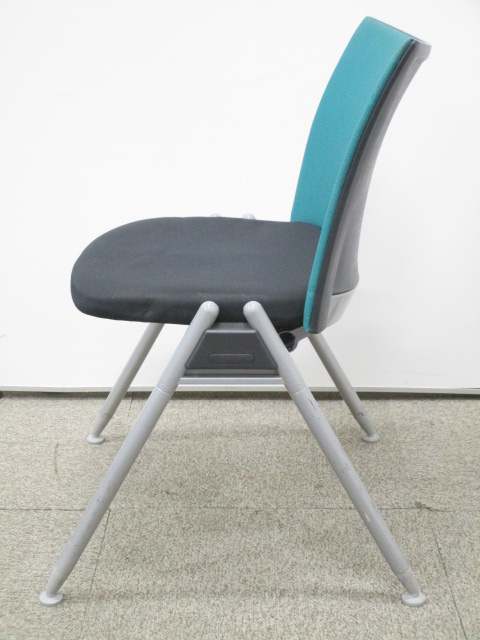 【クッション性に富んだミーティングチェア!】お洒落な背面グリーン!会議用におすすめ!【スタック】- 池袋店