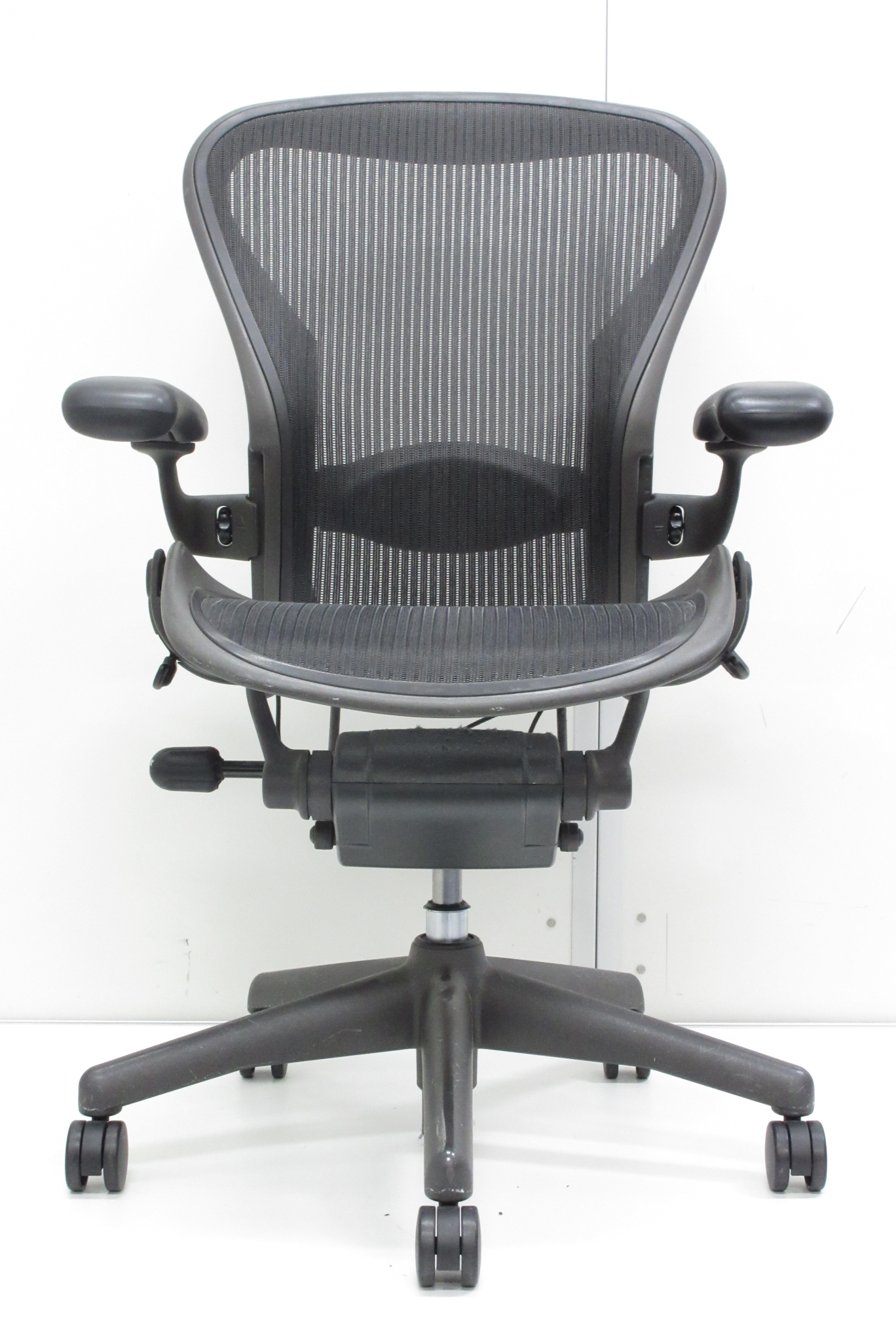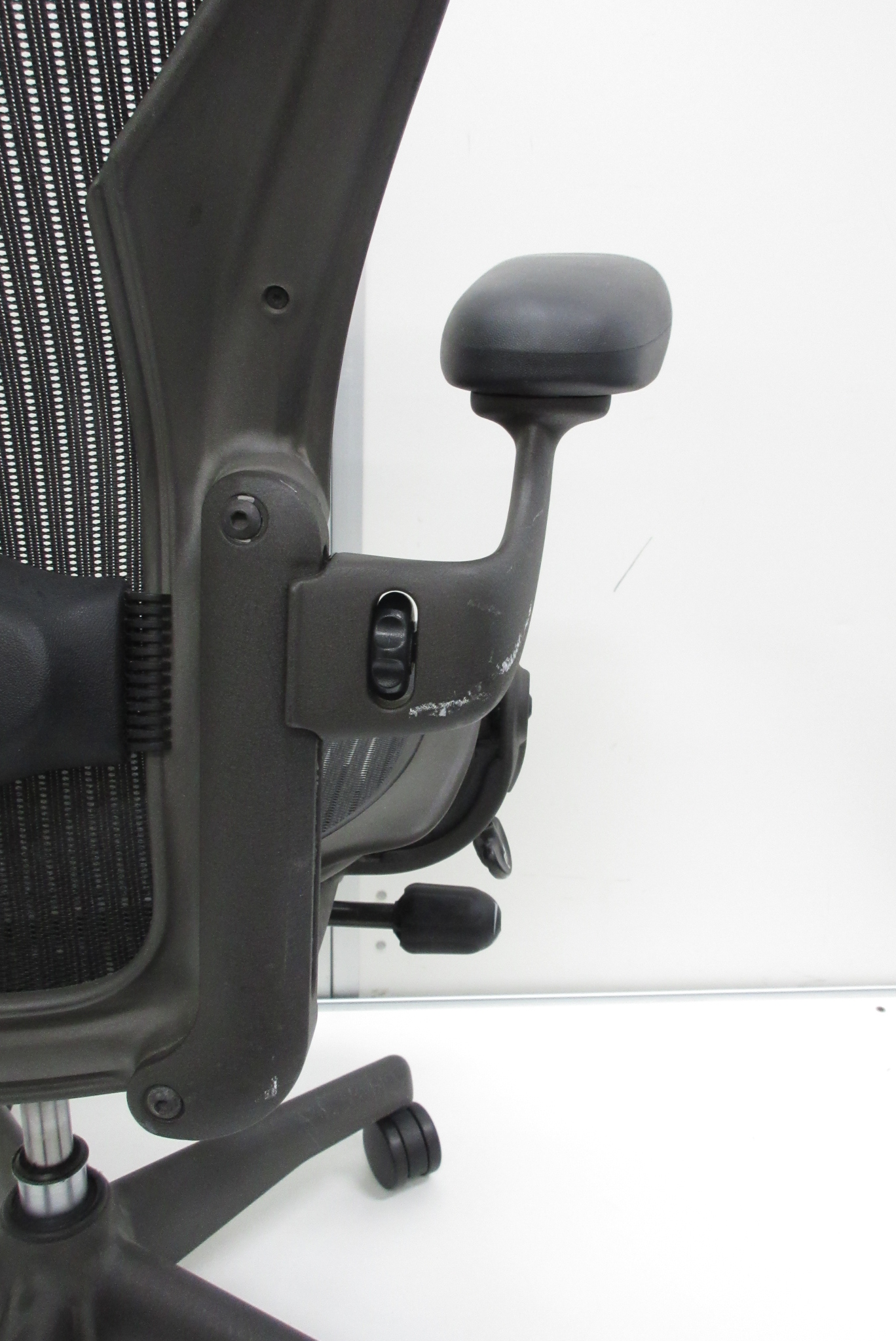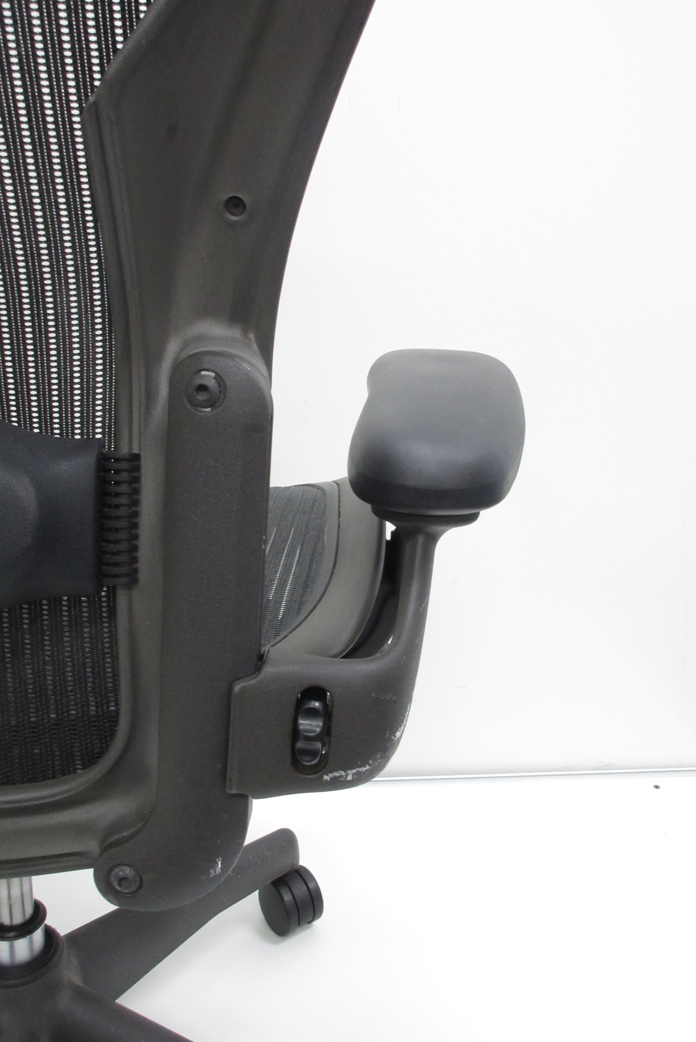 【★状態イマイチのためお安く!】■ハーマンミラー製 アーロンチェア Bサイズ 固定肘 ※キズあり・ランバーサポート無・昇降ガス圧弱めのためお安く!【訳あり特価品】