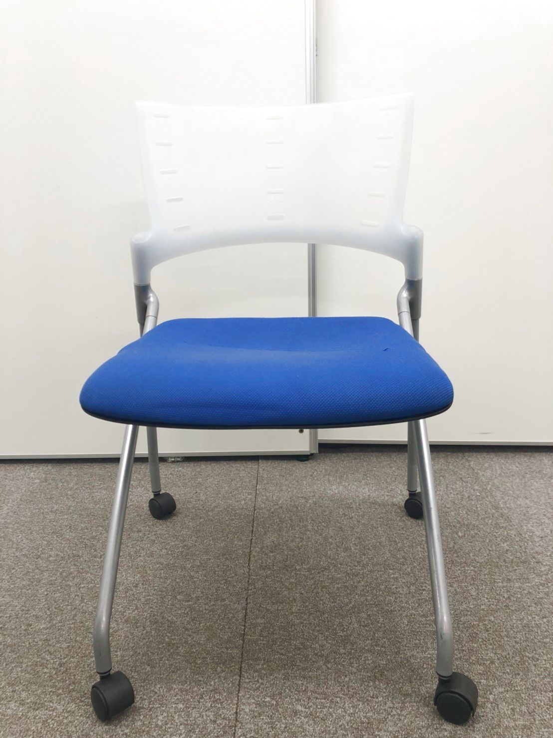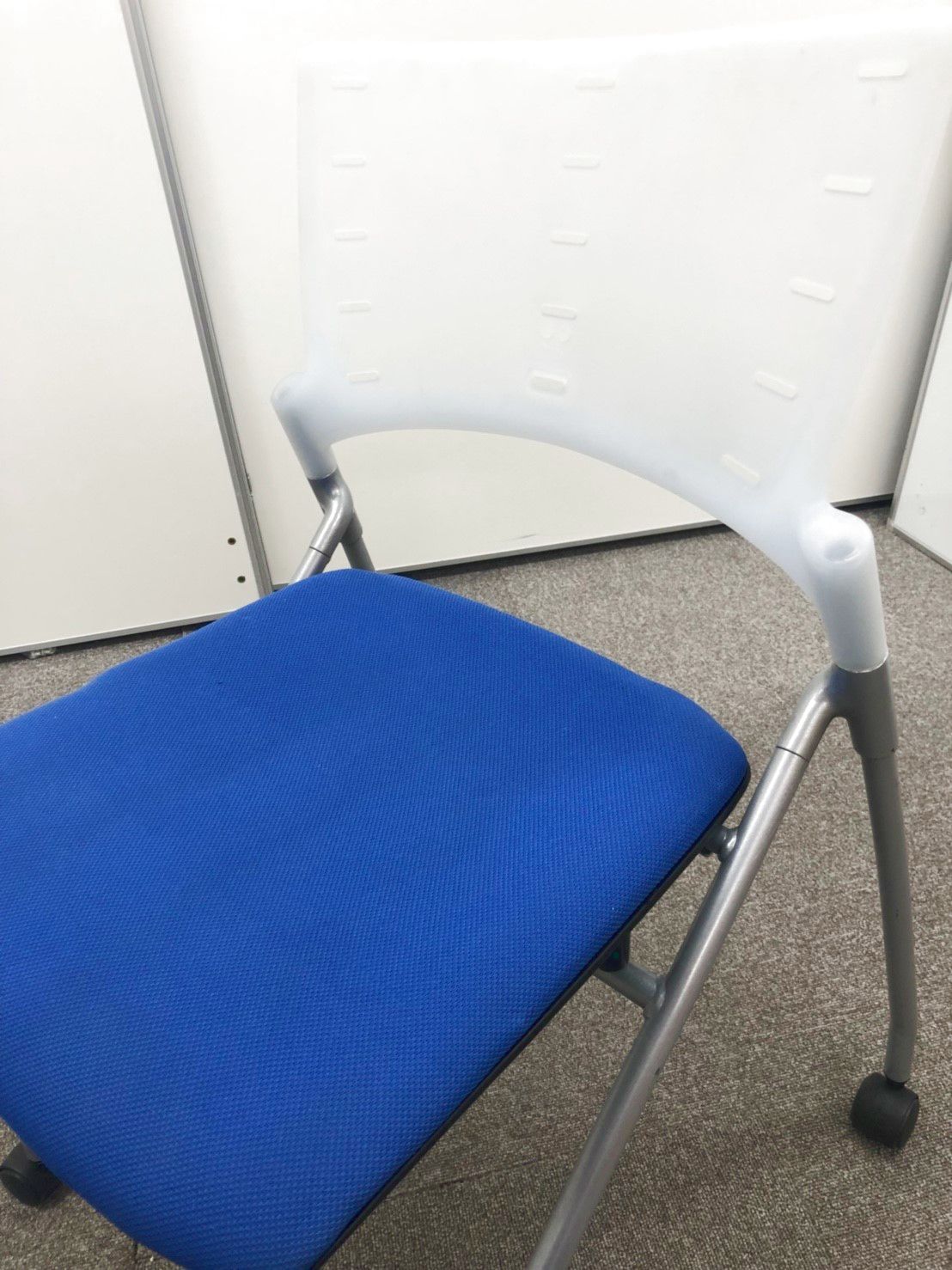 【ホワイト×ブルー】【人気のネスティングタイプ】イトーキ製ネスティングチェア■落ち着いたネイビーブルーカラー■収納楽なネスティングタイプ【中央区】- 日本橋店