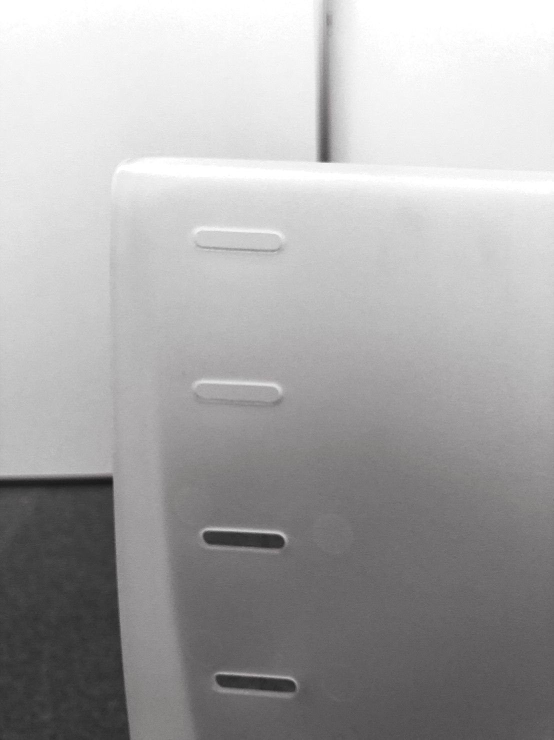 座面にうっすらと下のプラスチックのフレーム跡が浮かび上がっています。