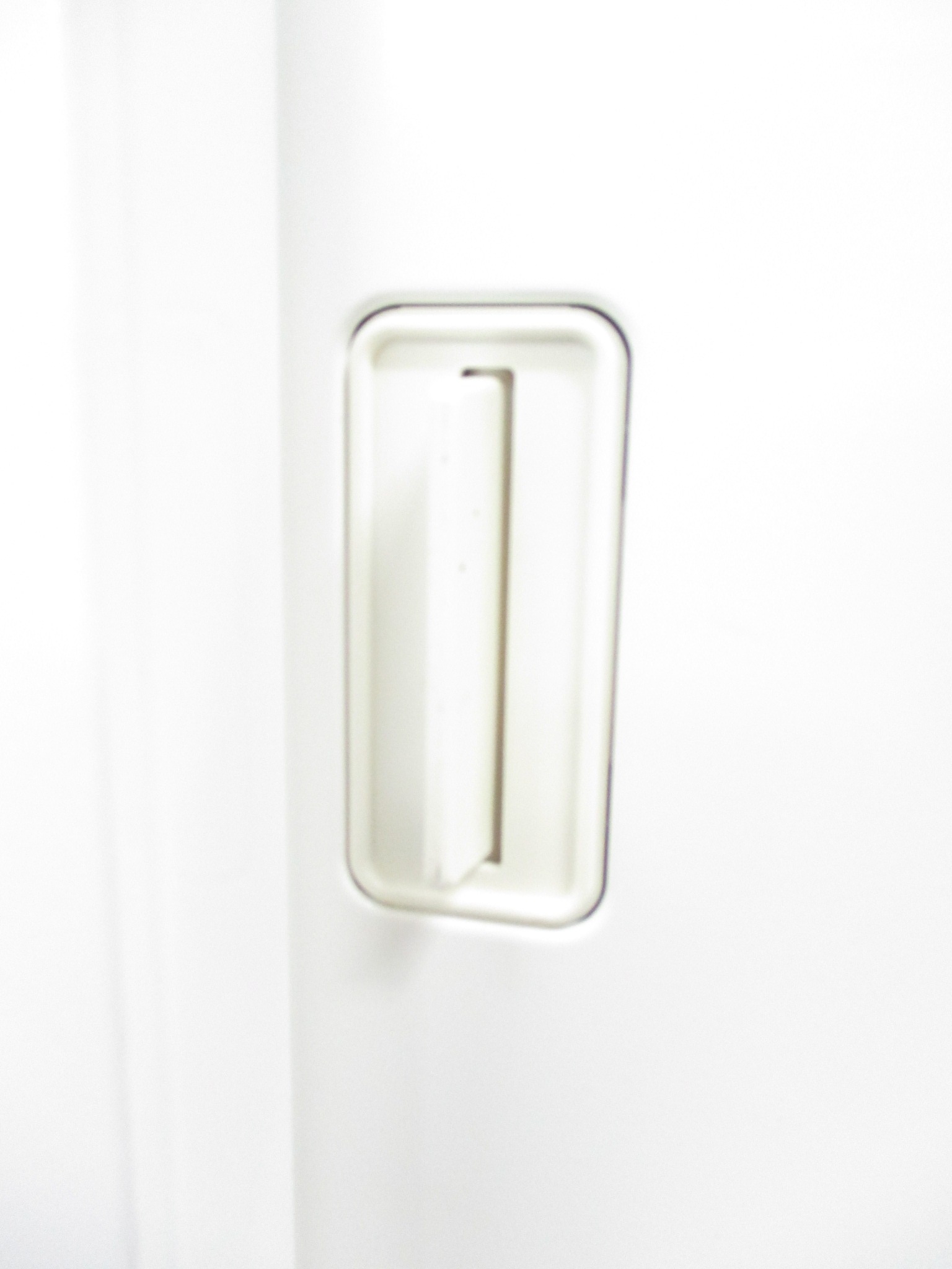 2枚引き戸書庫 オカムラ レクトライン 鍵付き シリンダー錠 ホワイト 天板無し スライド式の扉のため導線を邪魔しません