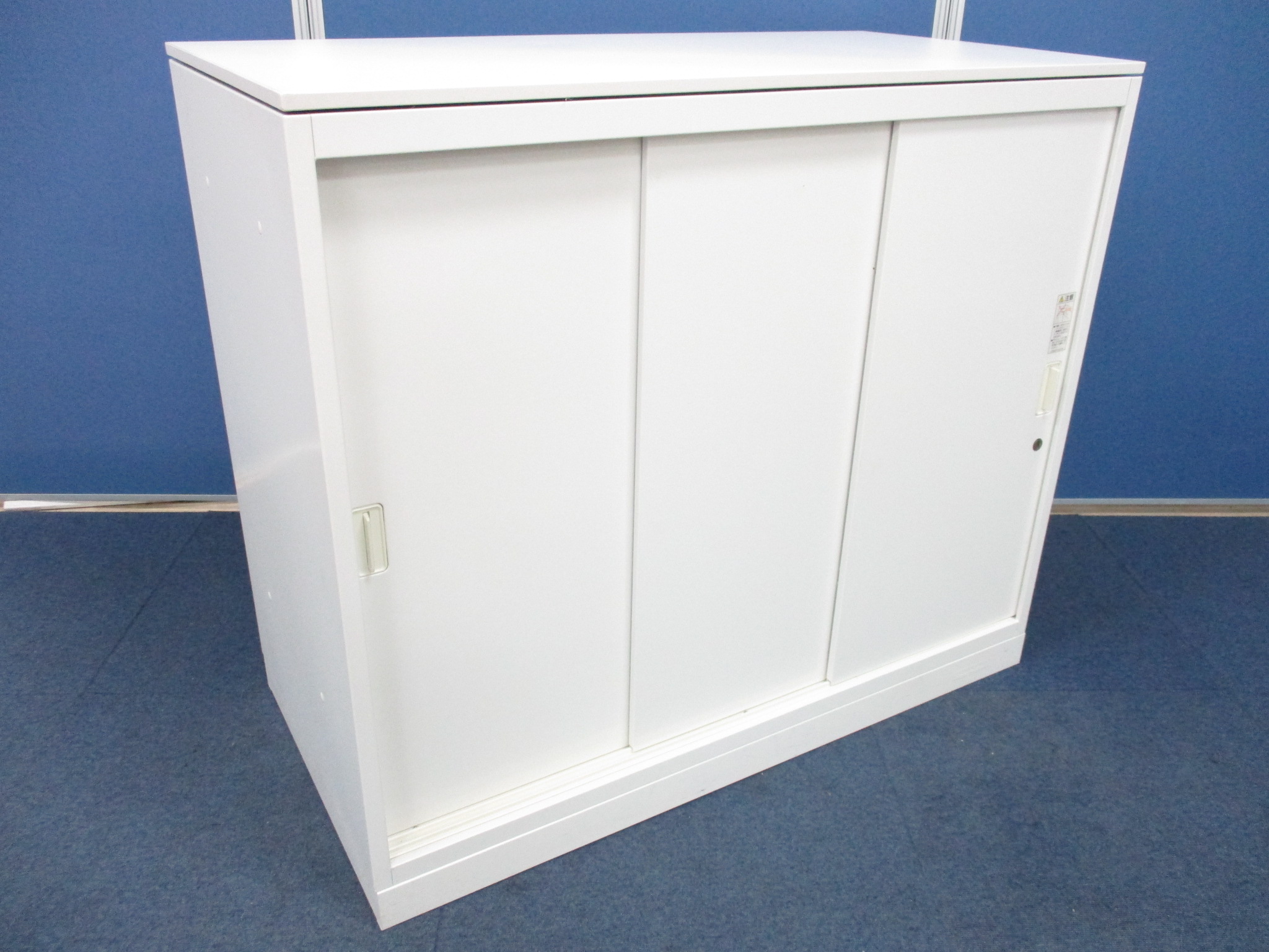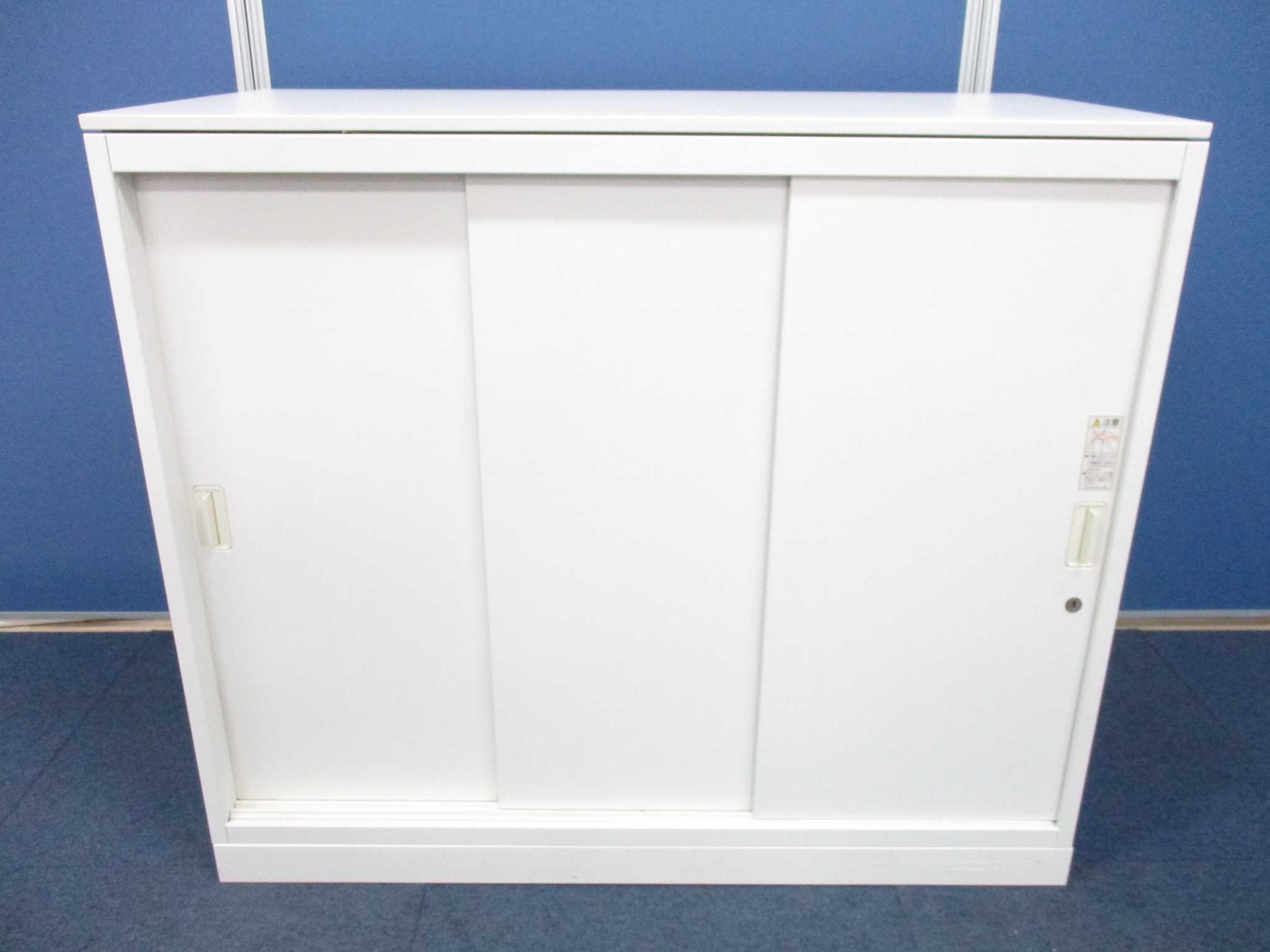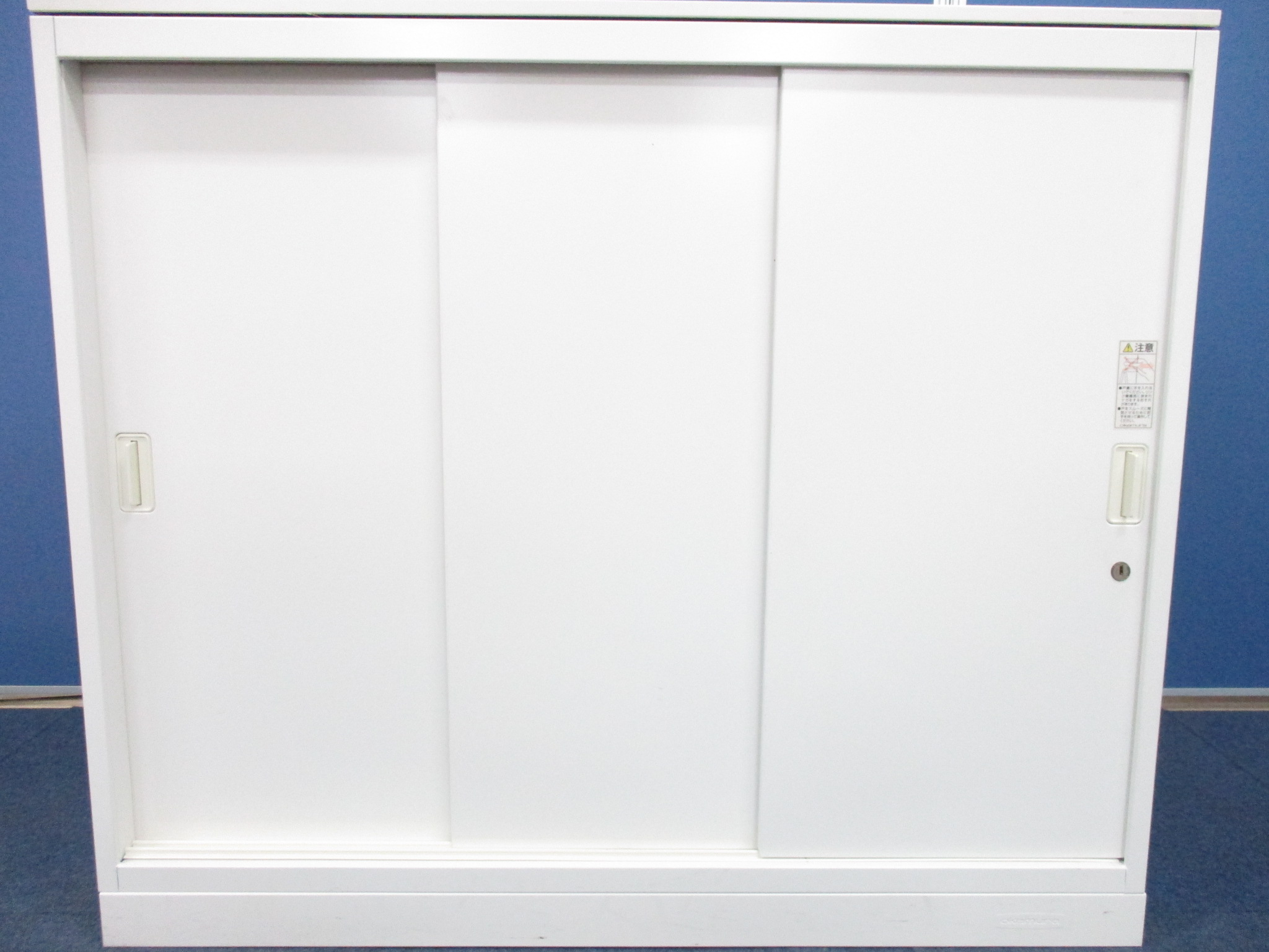 オカムラ製 人気レクトラインシリーズ ホワイト シリンダー W800xD450XH1050 3枚引戸 ※ベースなし 3枚引き違い書庫!!