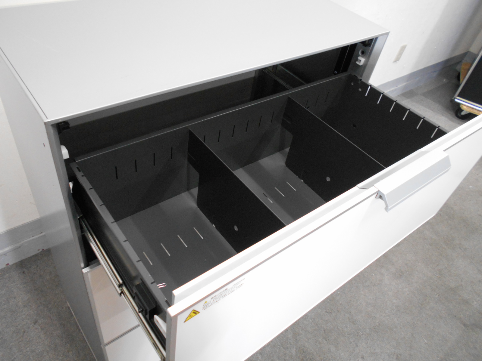 - 一部不具合ありそ引出の開閉不可、施錠不可、棚板無しといったの書庫の本来の効用を果たすための機能以外の一部が使用不可(例、扉、引出の開閉がしづらいなどがある。 )