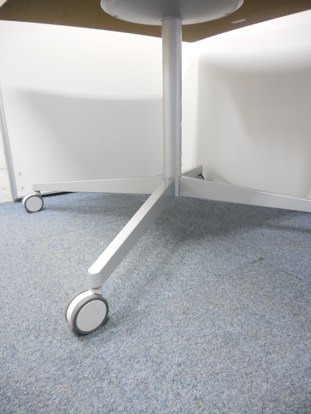 【リフレッシュスペースにもオススメ!】■オカムラ(okamura)製 アプションフリーシリーズ ミーティングテーブル \ ナチュラル木目カラー カイトタイプ 単支柱 【フレキシブルに使えるキャスター付!】