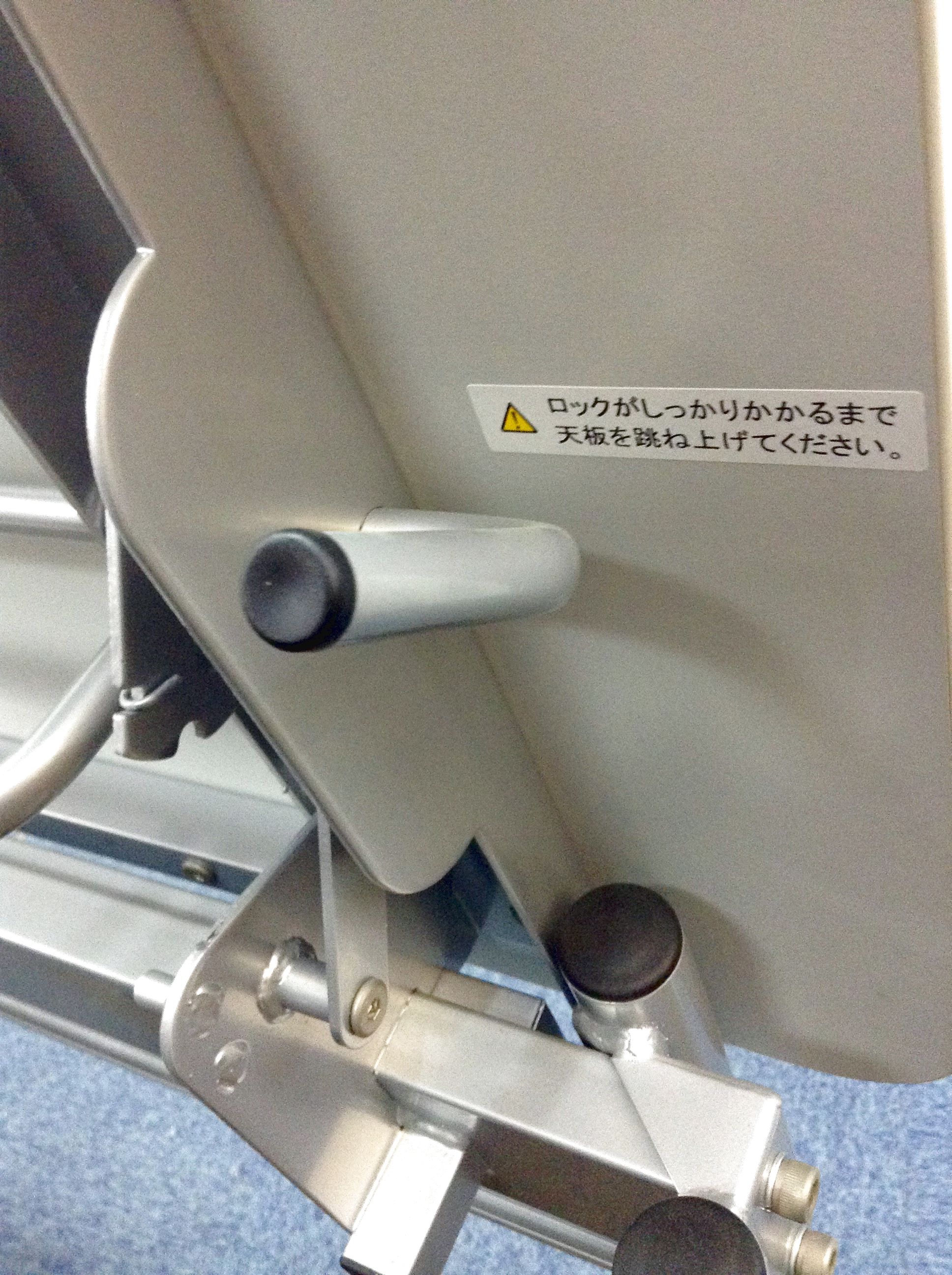 - 一部不具合あり天板歪み、アジャスター無し、キャスター使用不可ようなそのテーブルの本来の効用を果たすための機能以外の一部が使用不可な状態。(例、キャスターロッ ク機能使用不可、棚板無し等がある。)