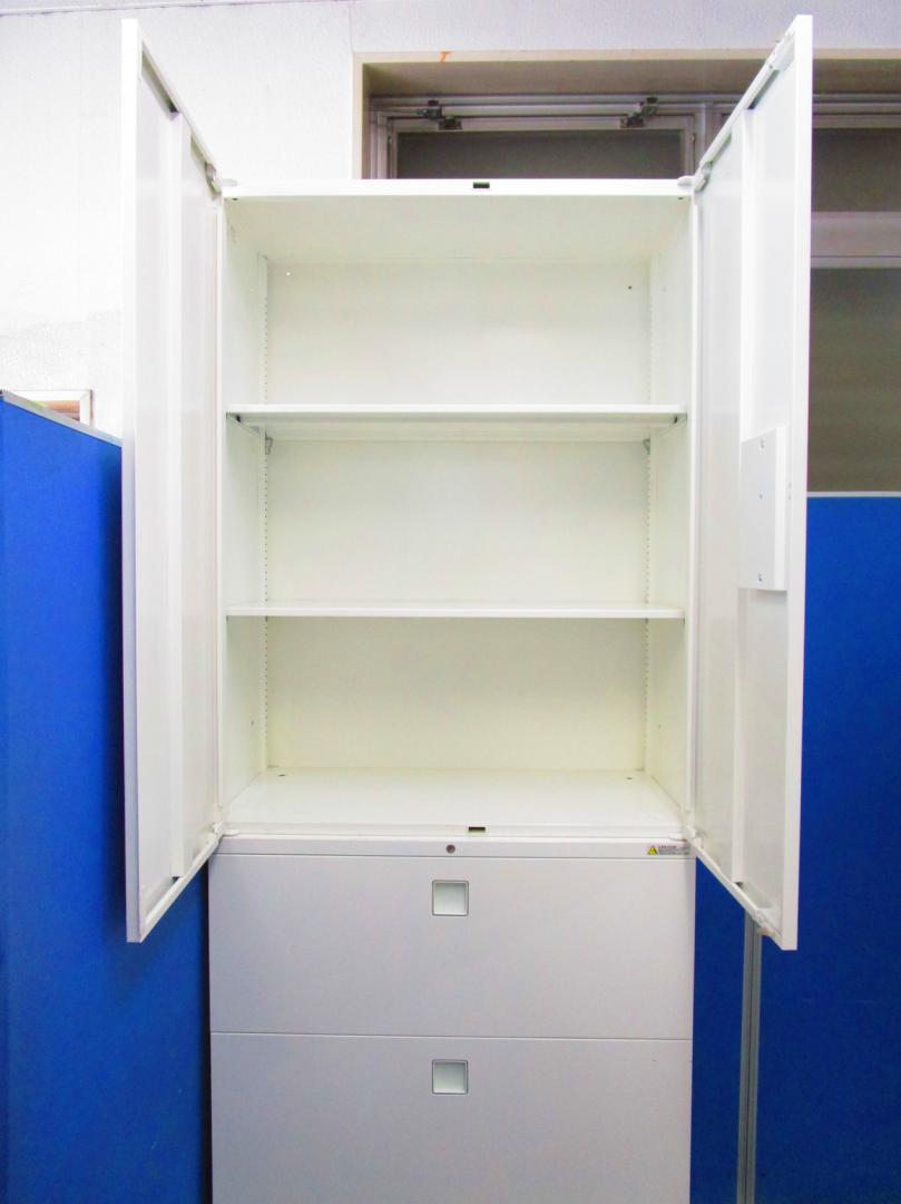 使い勝手抜群の上下書庫セット!上段両開き+下段オープン仕様! ■オカムラ/レクトライン/ホワイト