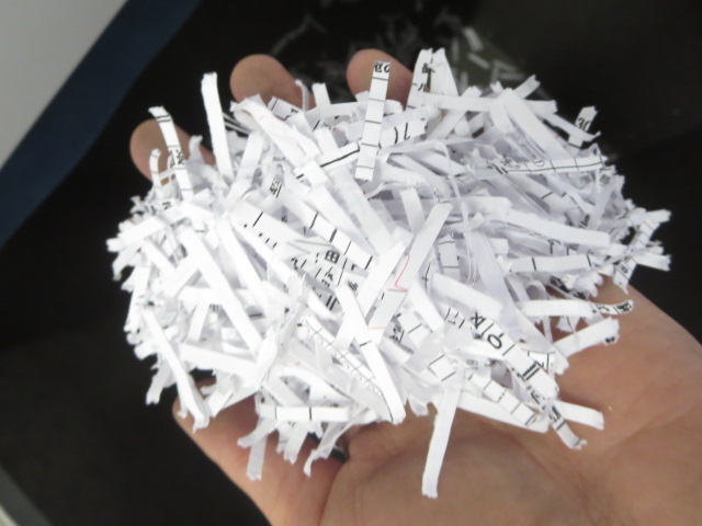 細断方式は、紙を圧縮してミリ単位でチップ状に切り刻みますので、収容能力を高めます。