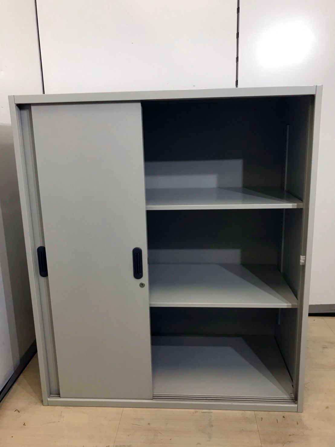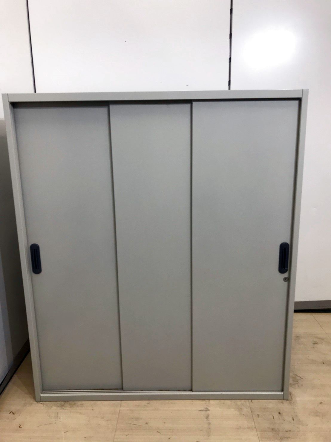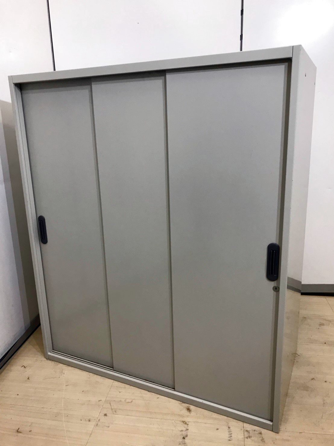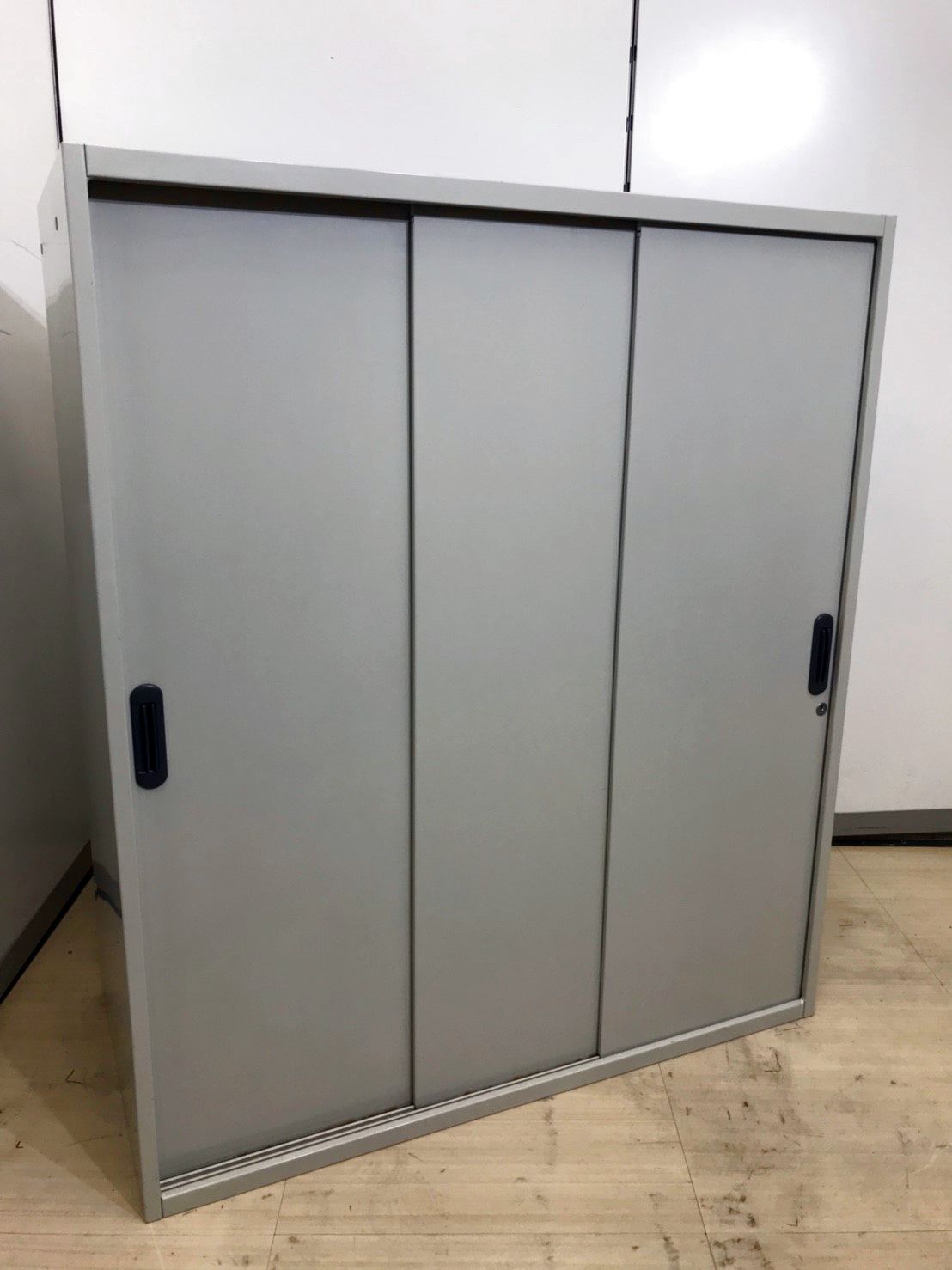 プラス製品の引き違い書庫の入荷です!ベースが無い為お安く販売しております!3枚引き戸の為導線が狭くても扉が邪魔になりません!- 大阪梅田本店