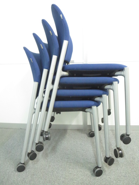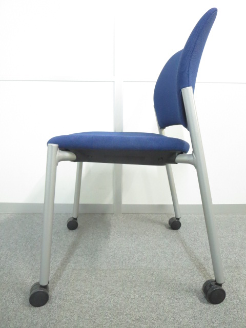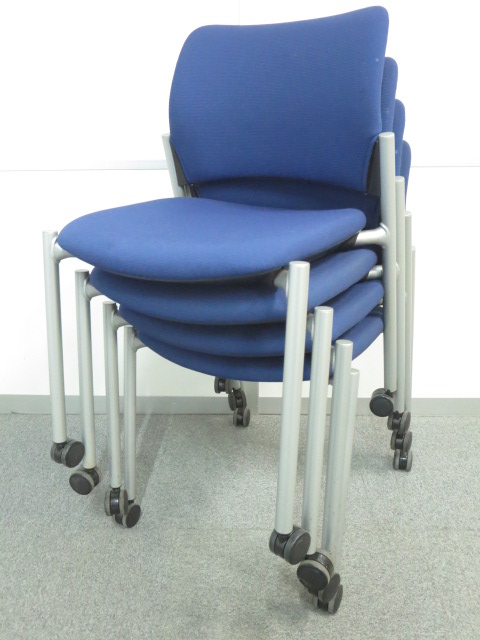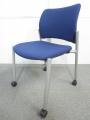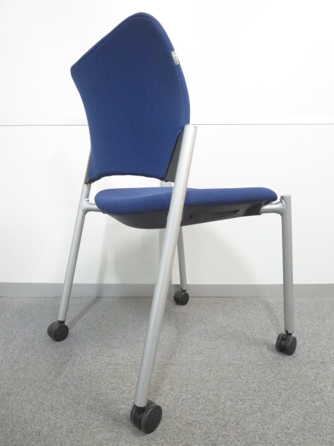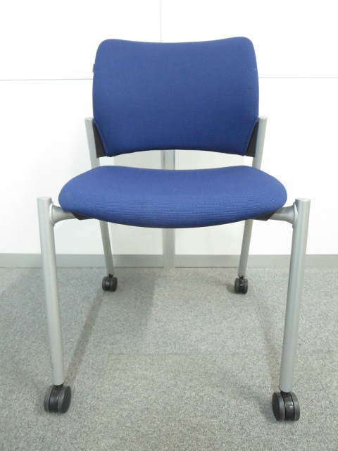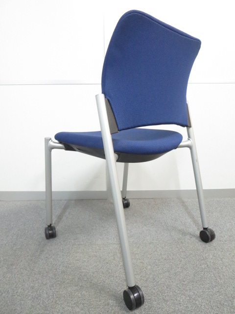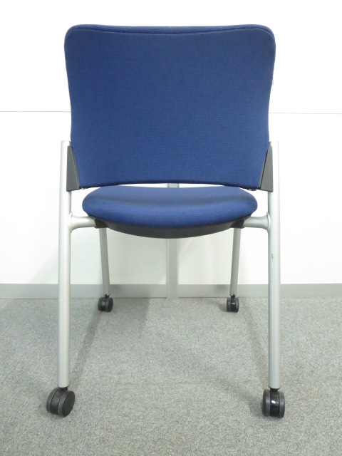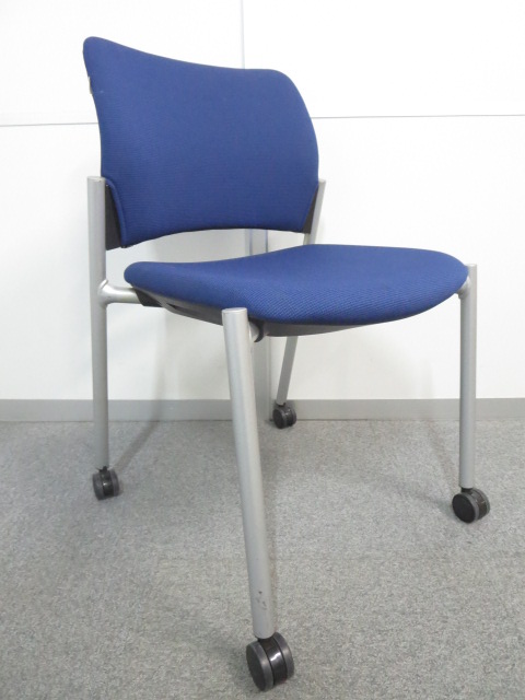 【長時間のご使用にもオススメ!】■オカムラ製 スタッキングチェア ブルー キャスター付- 川崎店