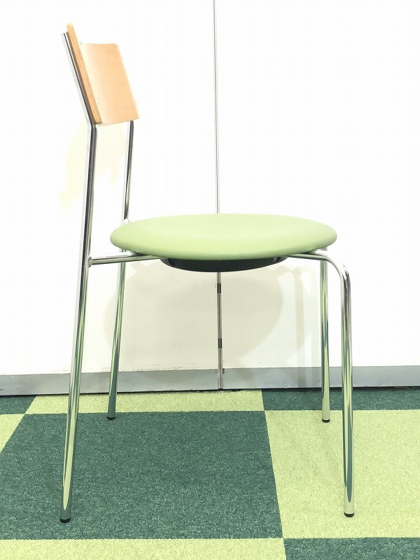 背面は木目のナチュラルカラーに座面はライトグリーンと明るくミーティングスペースにピッタリです!!