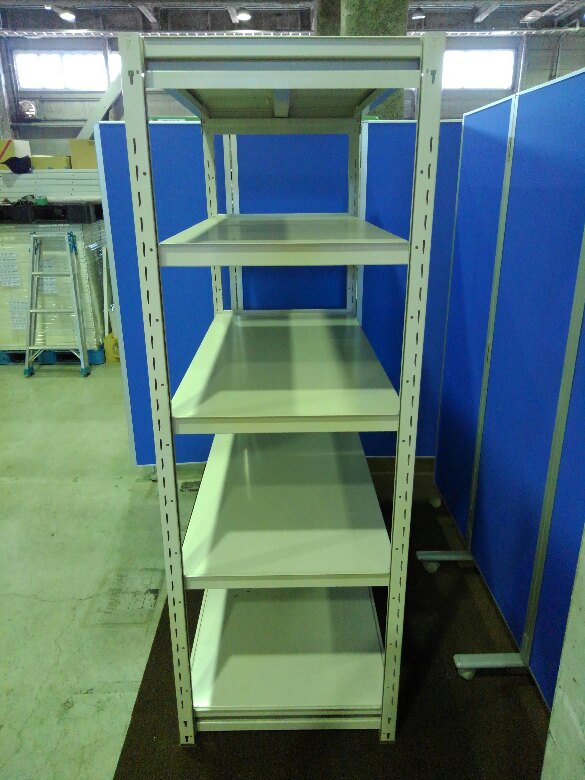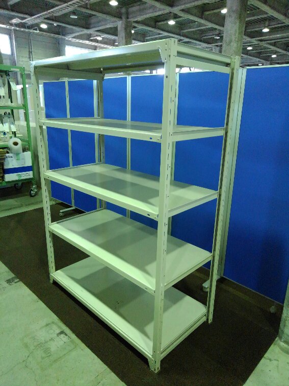 中古のボルトレスラックが1台入荷しました! 天地5段 耐荷重:段/150kg ボルトレスなので組立も簡単! ※マテハン本舗の中古商品は、千葉県柏市に在庫がございます。- マテハン本舗