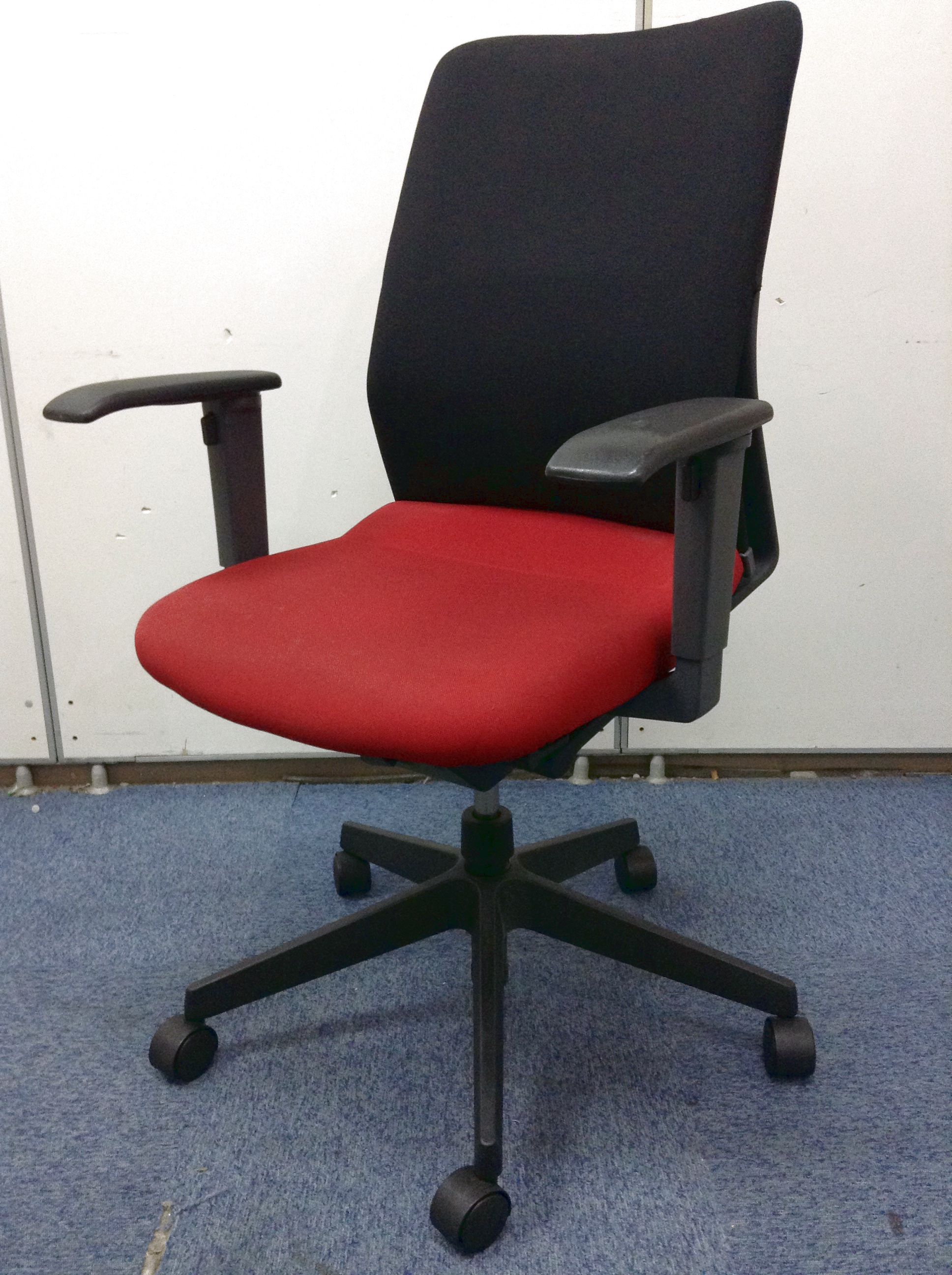 座面は赤、背もたれは黒とツートーンのスタイリッシュなカラーでオフィスの雰囲気も締まります