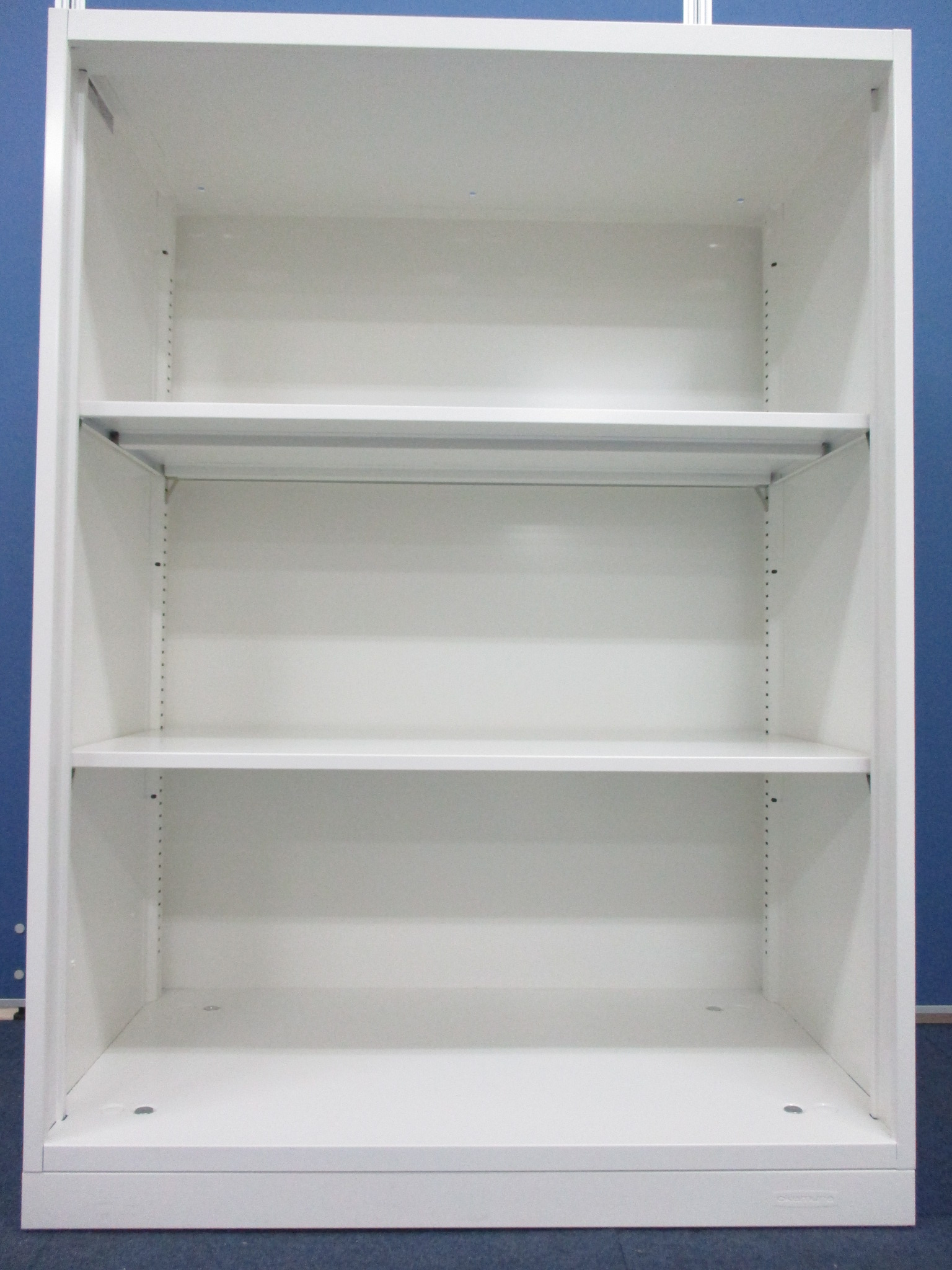 オープンキャビネットが入荷!とりあえず収納したい、書類の出し入れの多い、常に見える形で収納したい、そんなお客様におすすめ! ■オカムラ/レクトライン/ホワイト ※元は両開き書庫のため扉を外した跡がございます。
