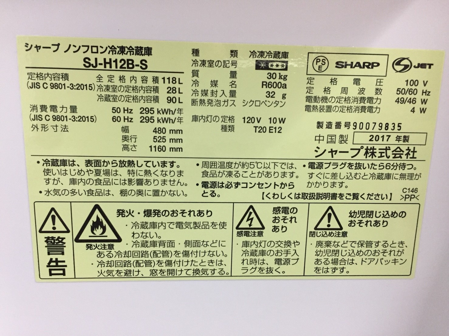 サイズな冷蔵庫です。