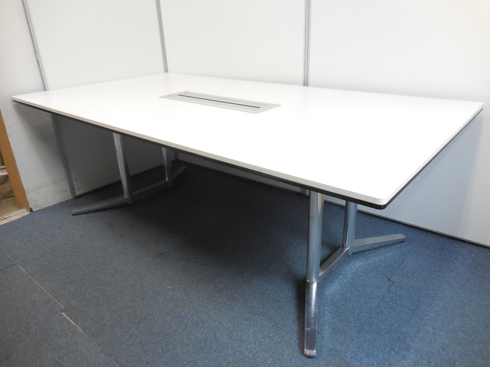 【ワンランク上のカンファレンス空間を演出!】■オカムラ ラティオシリーズ 会議用テーブル W3200mm(8~12名用) 配線ボックス付 ホワイト 【Okamura RATIOⅡ】