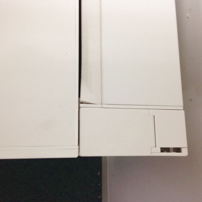 - 机の角がシャープなので、隣り合うデスクがフラットにつながります。すっきりとしたデザインです。